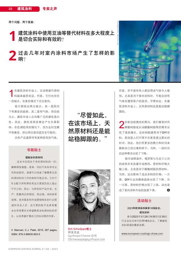 專題:防護涂料 生物基直接替代解決方案 當前研發情況和面臨的主要挑戰 年度調查:2023年回顧和2024年展望
