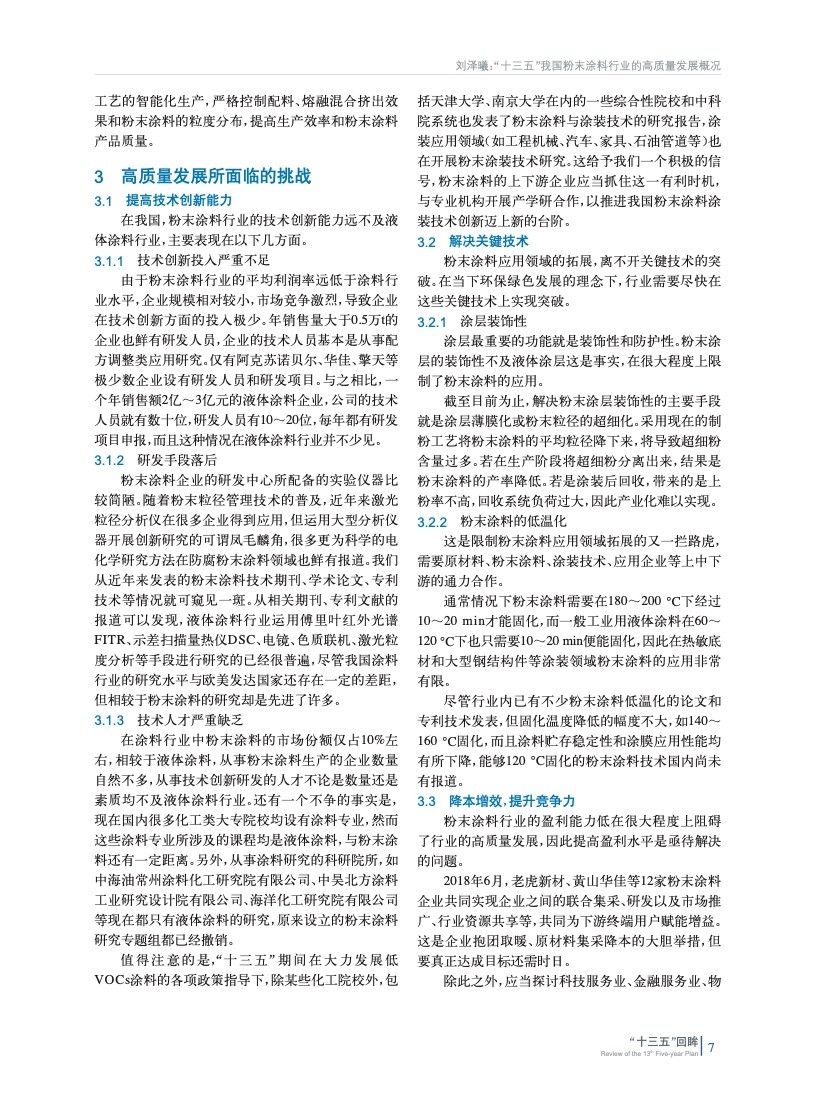 闡述了“十三五”期間我國涂料工業經濟運行情況和粉末涂料的行業運行情況,分析了5年間粉末涂料及其原材料和制粉設備的技術進步,提出粉末涂料行業高質量發展需要解決的短板問題,對行業發展具有一定的指導意義。