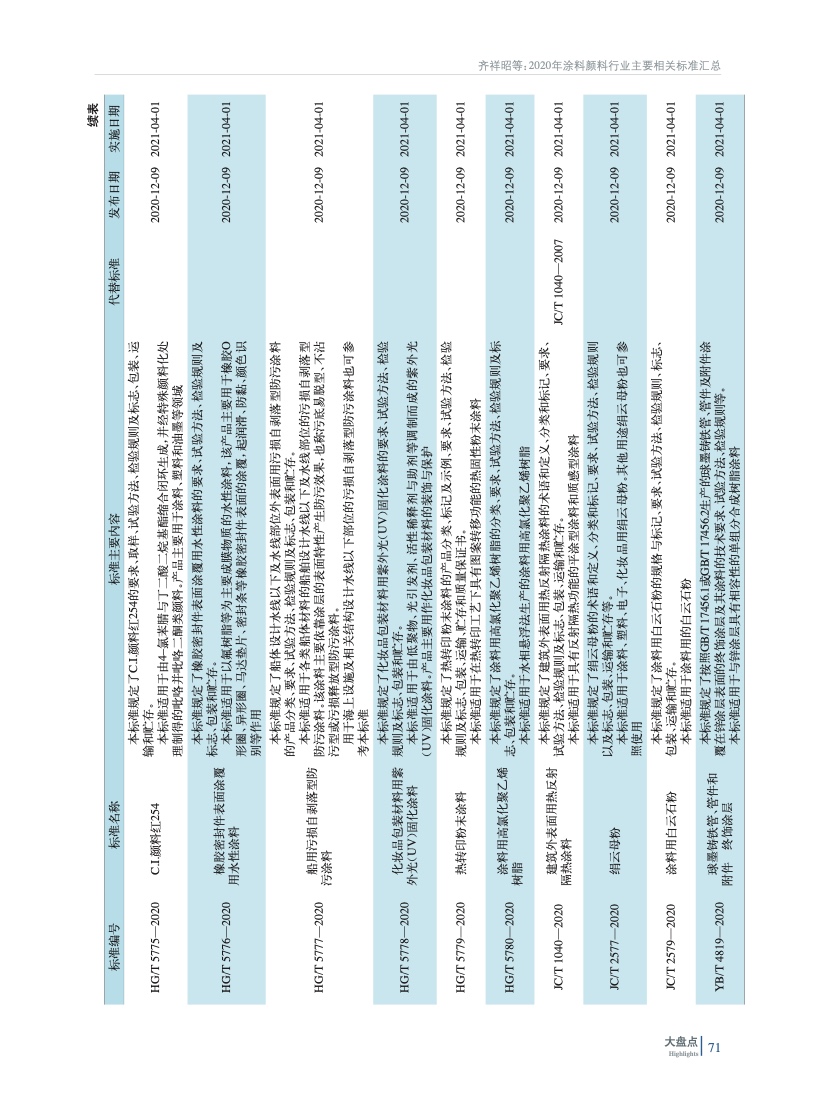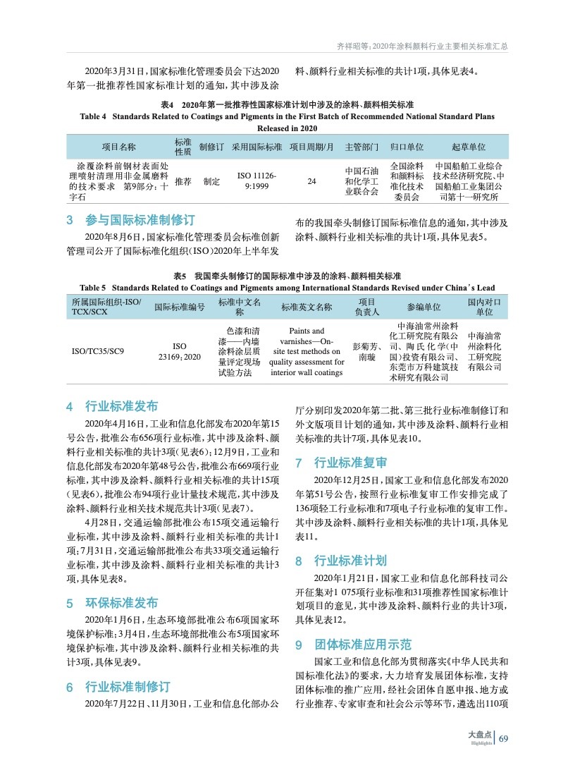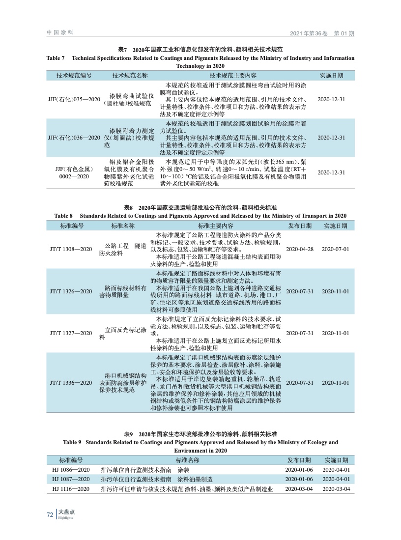 2020年涂料、顏料行業(yè)主要相關標準匯總