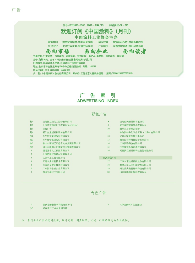 湖南金磐、武漢現(xiàn)代、《中國涂料》征訂通知