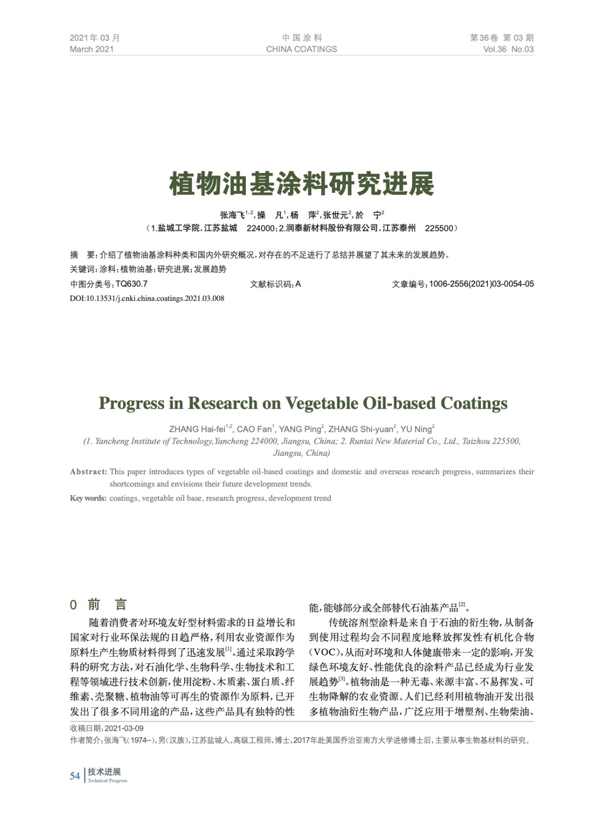 介紹了植物油基涂料種類和國內外研究概況,對存在的不足進行了總結并展望了其未來的發(fā)展趨勢。