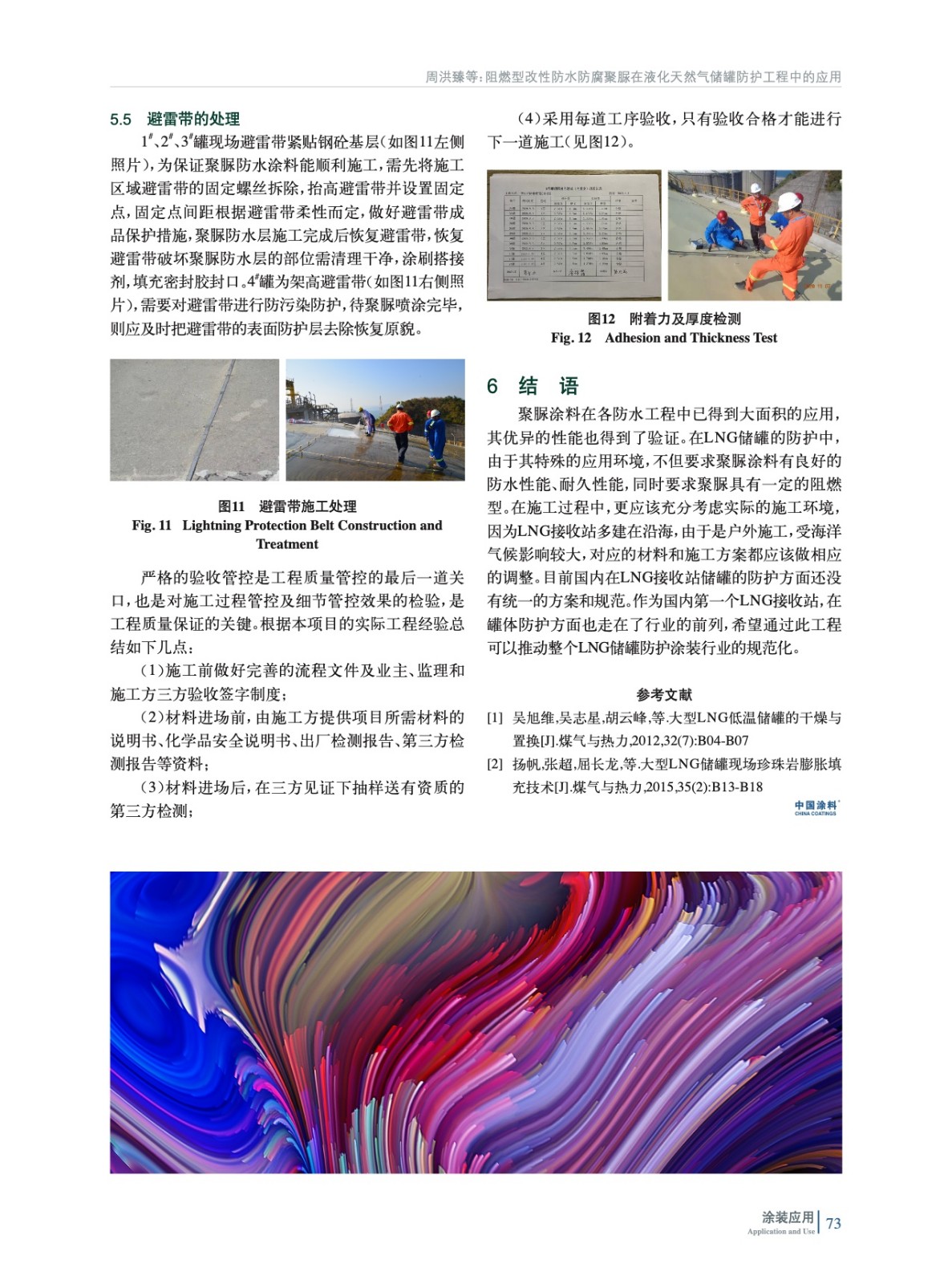 介紹了液化天然氣儲罐外罐的防護基本要求、材料選型原則,以及該防護工程概況、施工重點與難點、施工方案等。重點介紹了噴涂阻燃型防水防腐聚脲在該工程中的應用情況,包括聚脲施工環境要求及實際環境狀況、施工工序、涂層質量要求及驗收標準等。