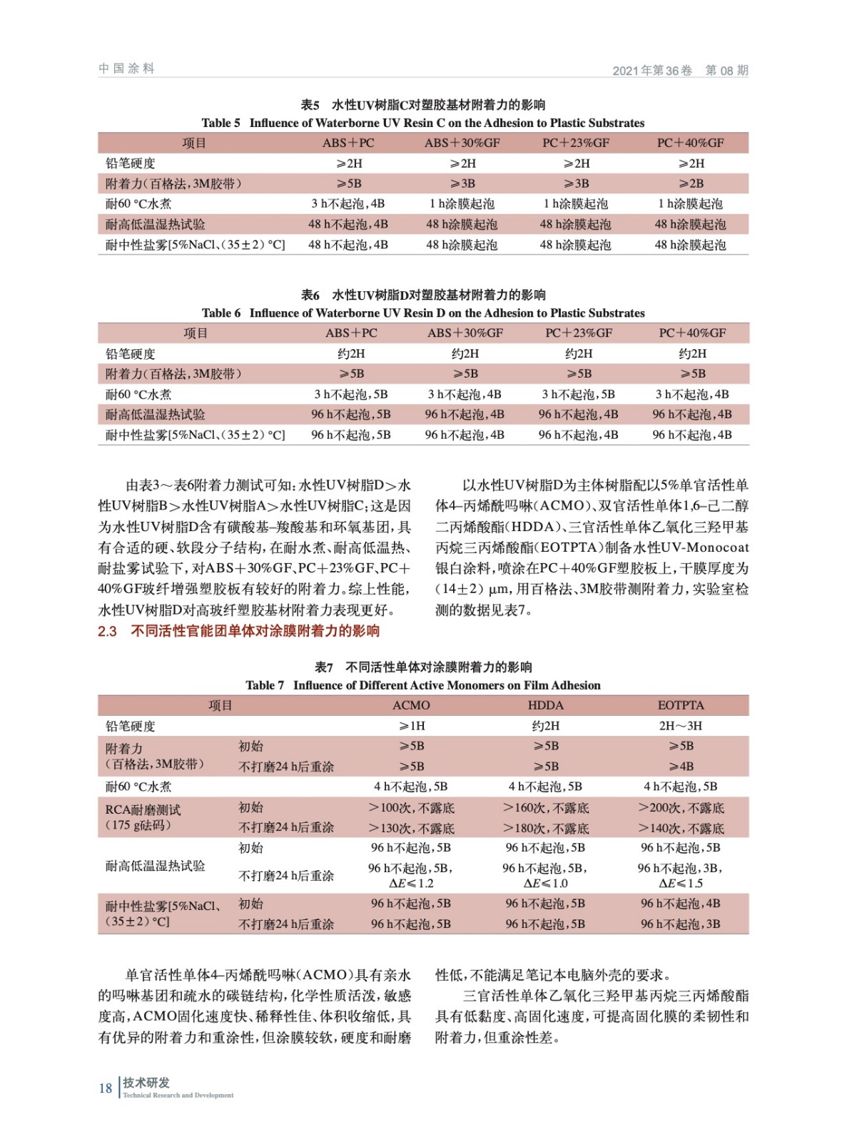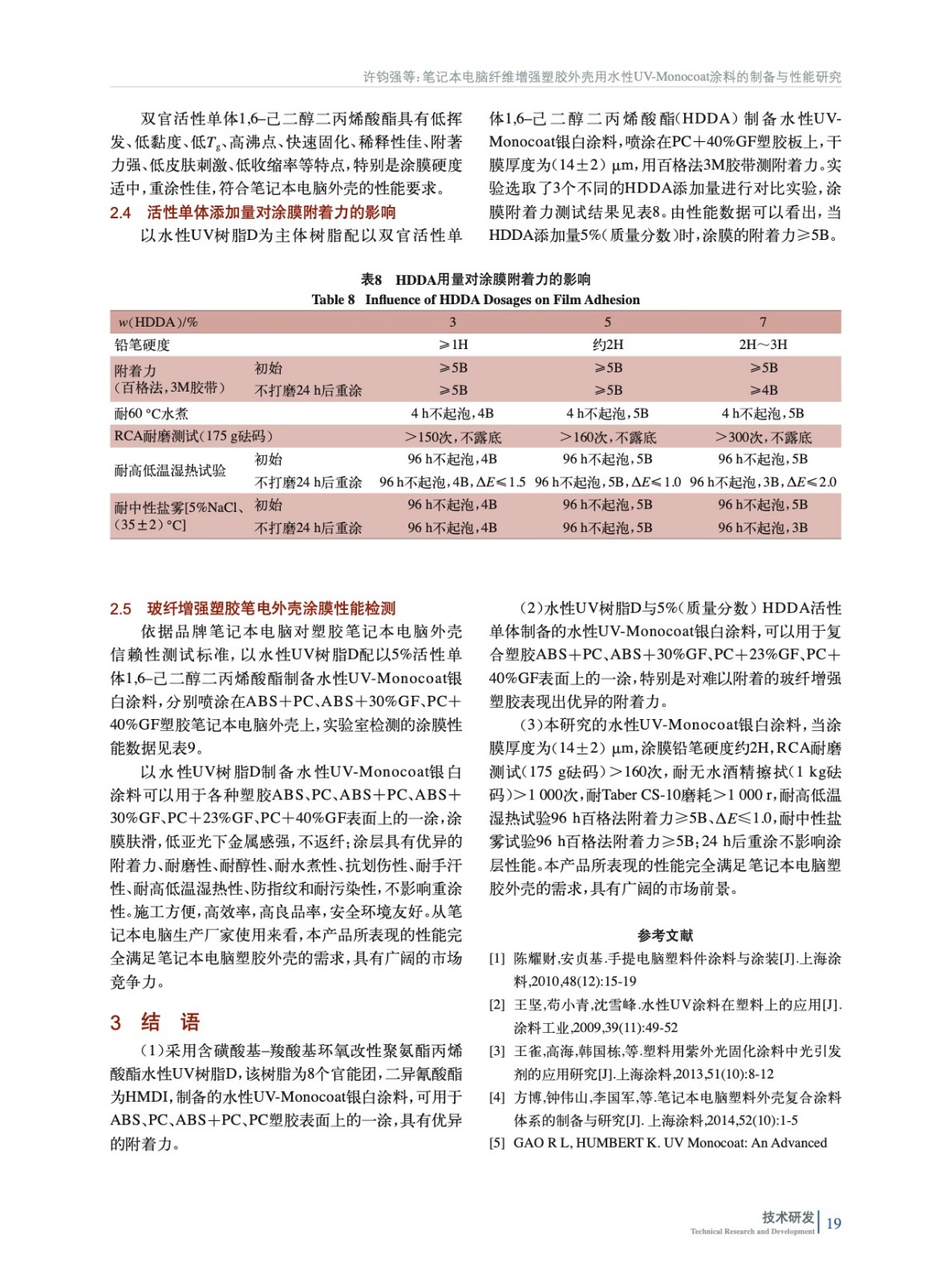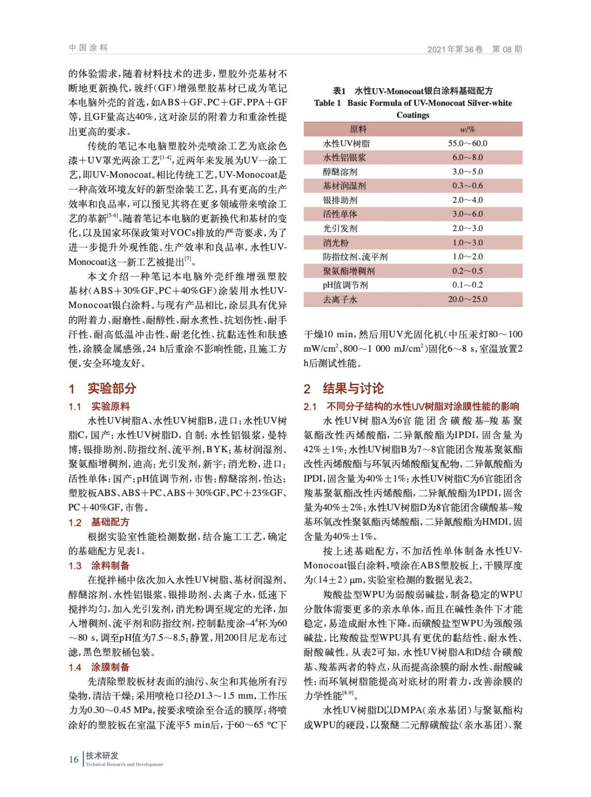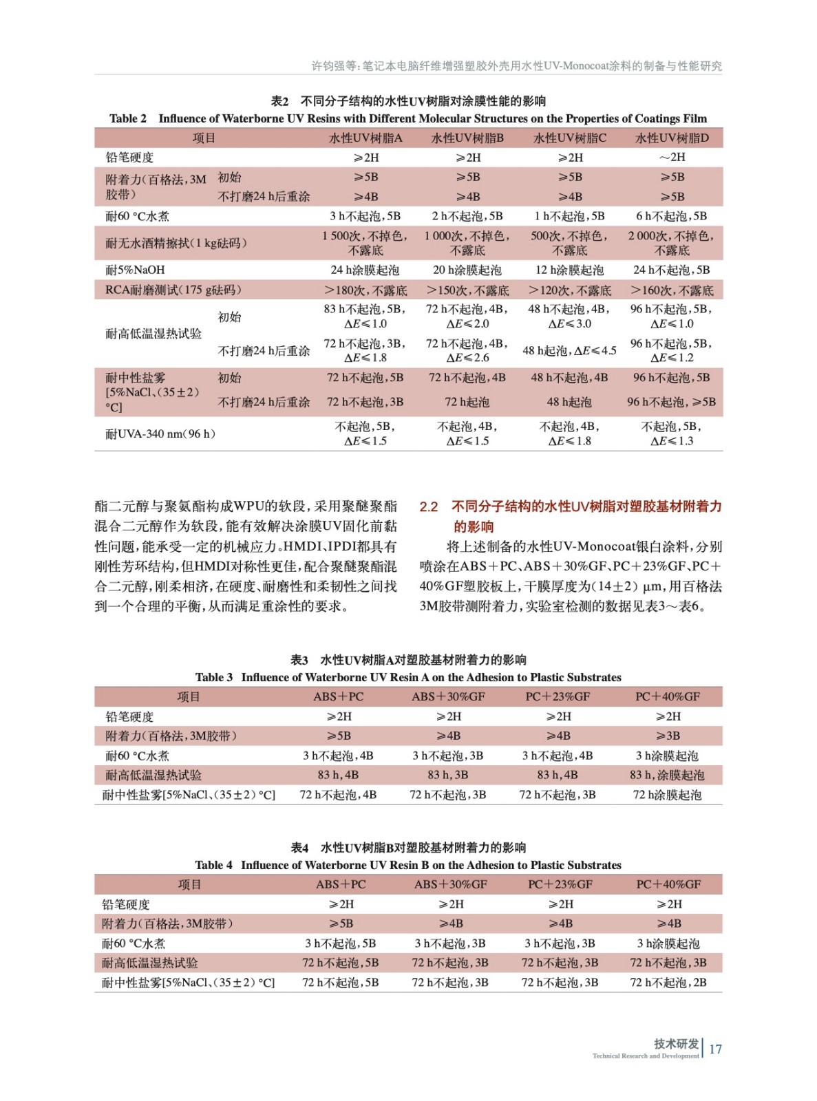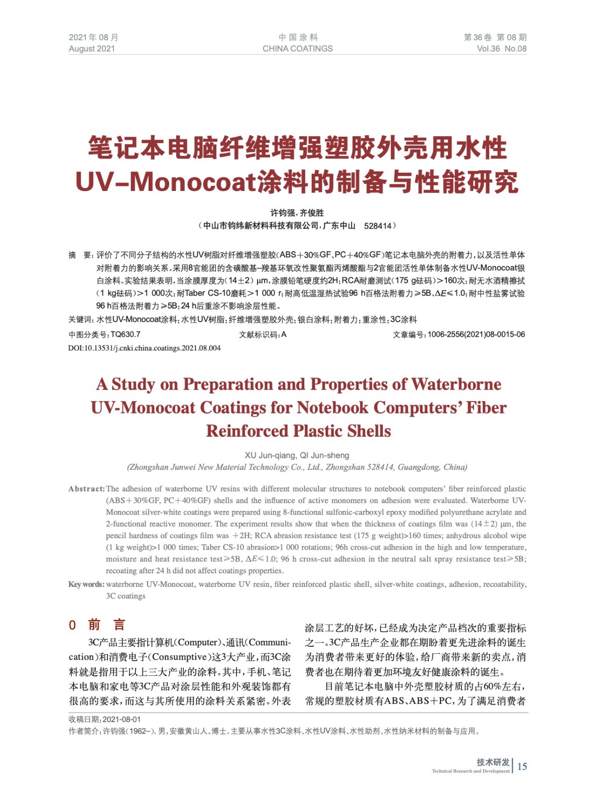 筆記本電腦纖維增強塑膠外殼用水性UVMonocoat涂料的制備與性能研究