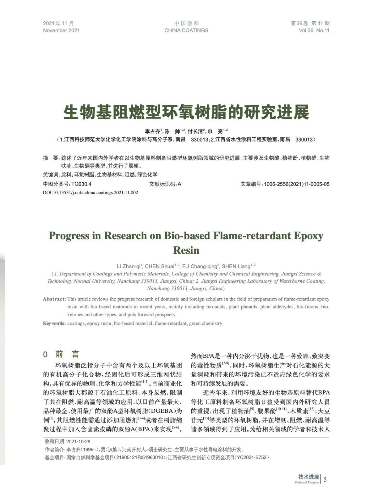 生物基阻燃型環(huán)氧樹脂的研究進展