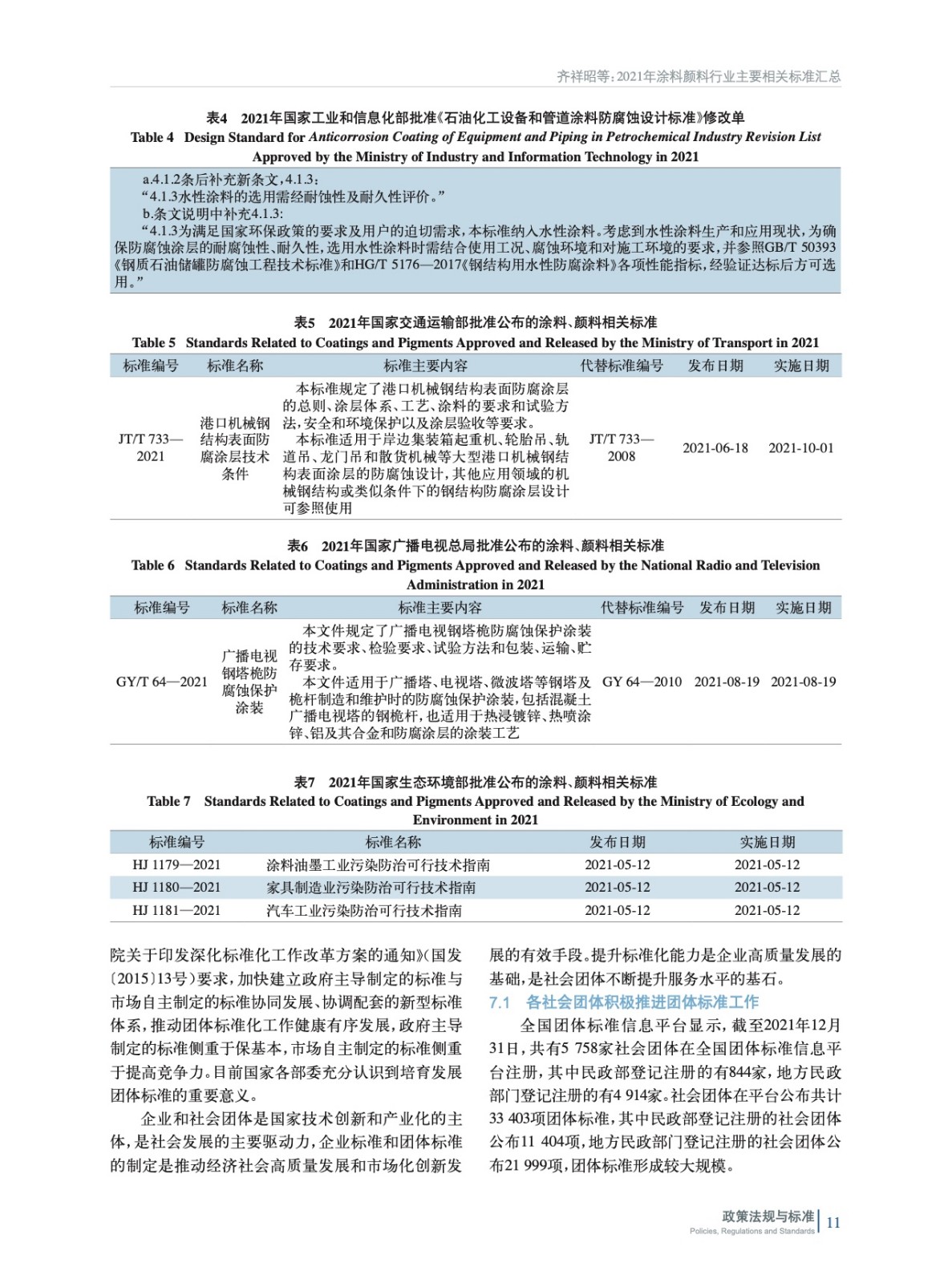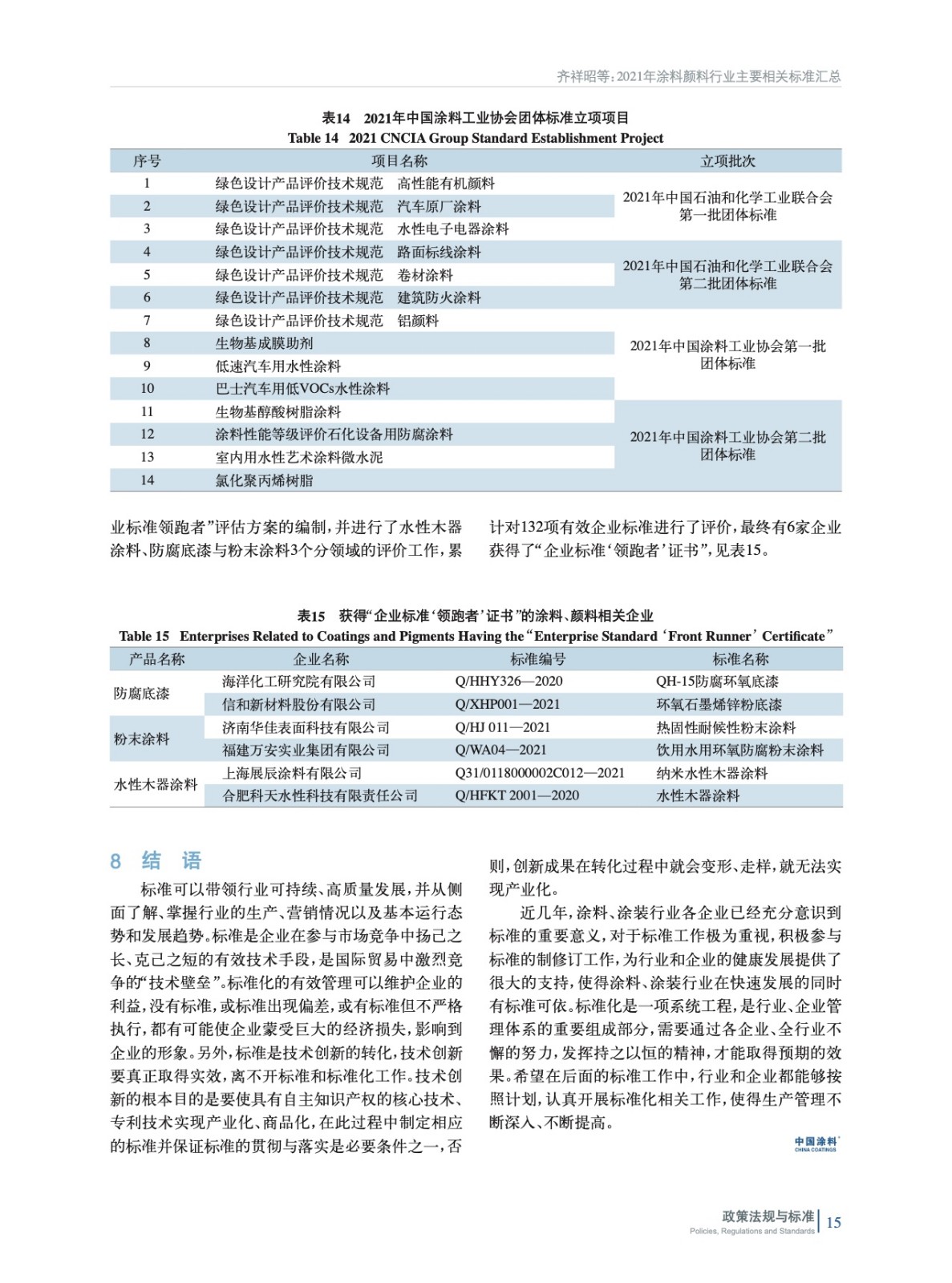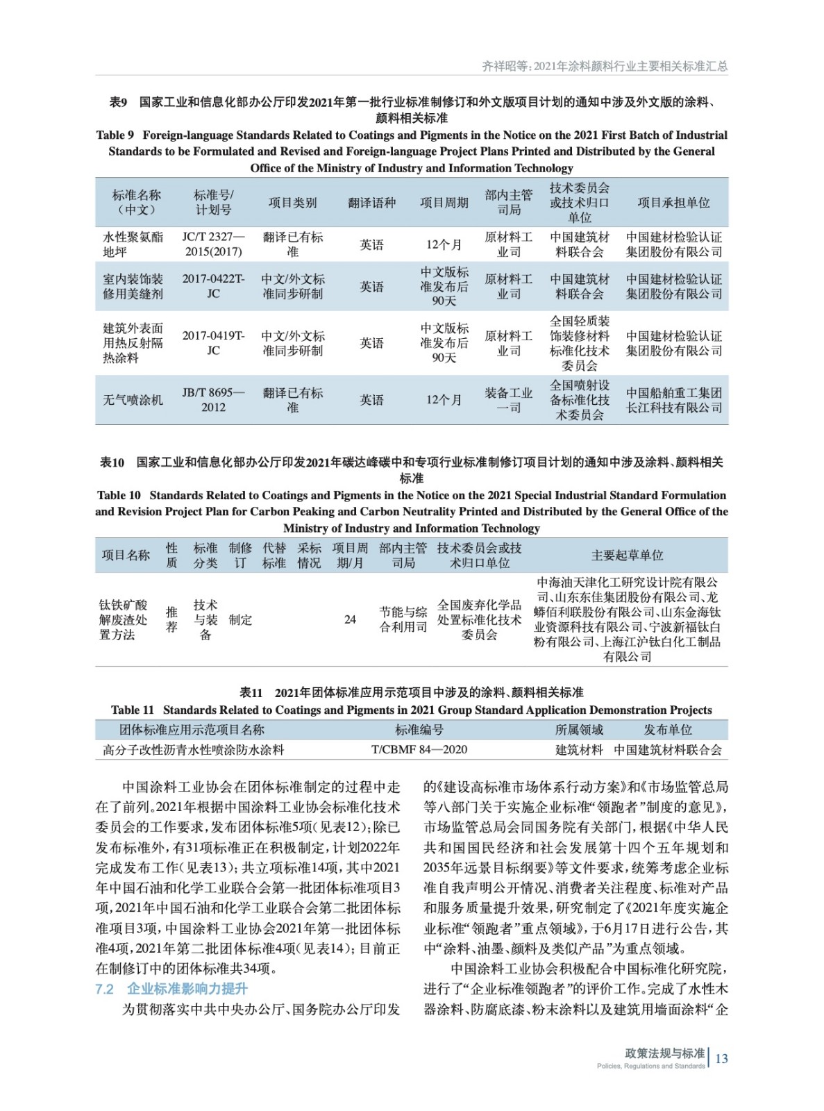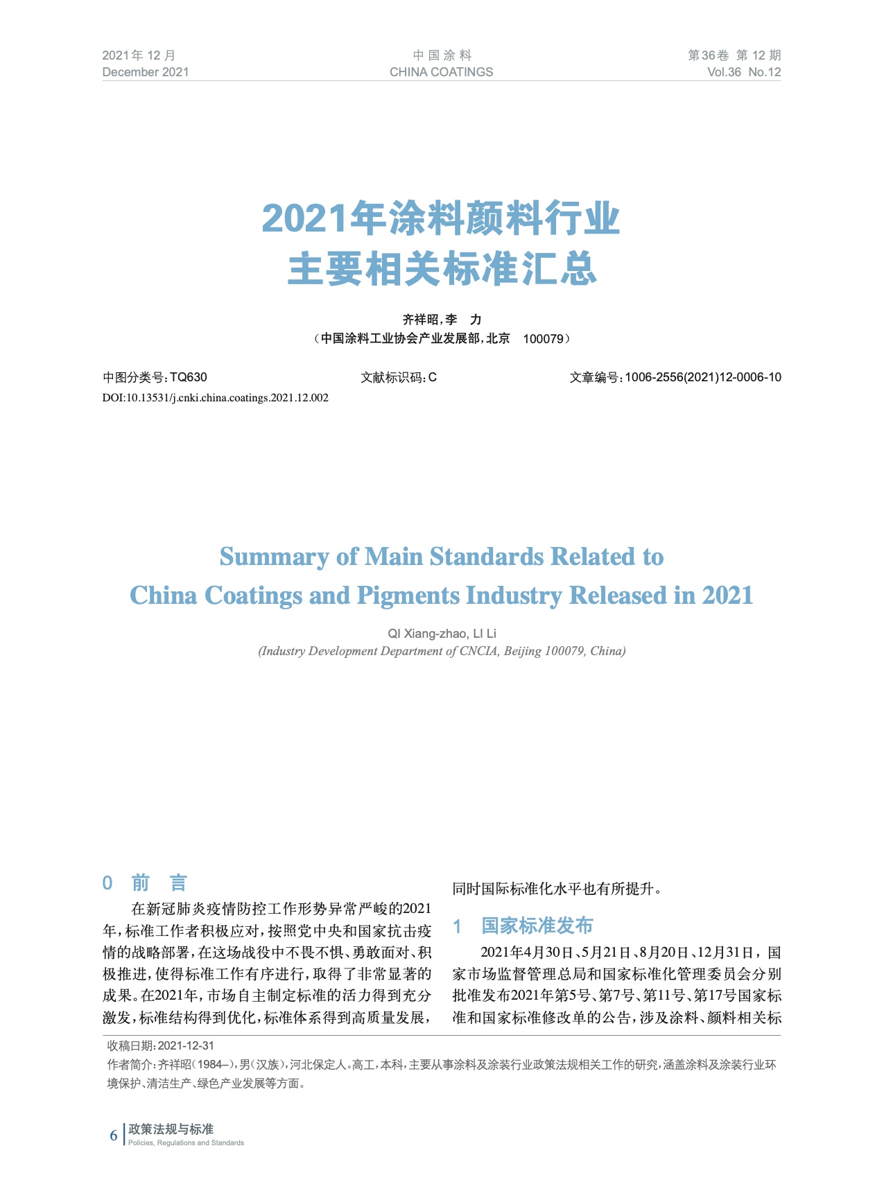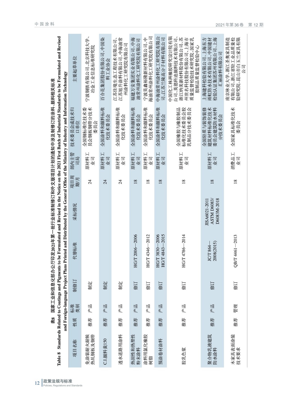 梳理匯總了2021年度中國涂料顏料行業出臺的相關國家、行業及團體標準。