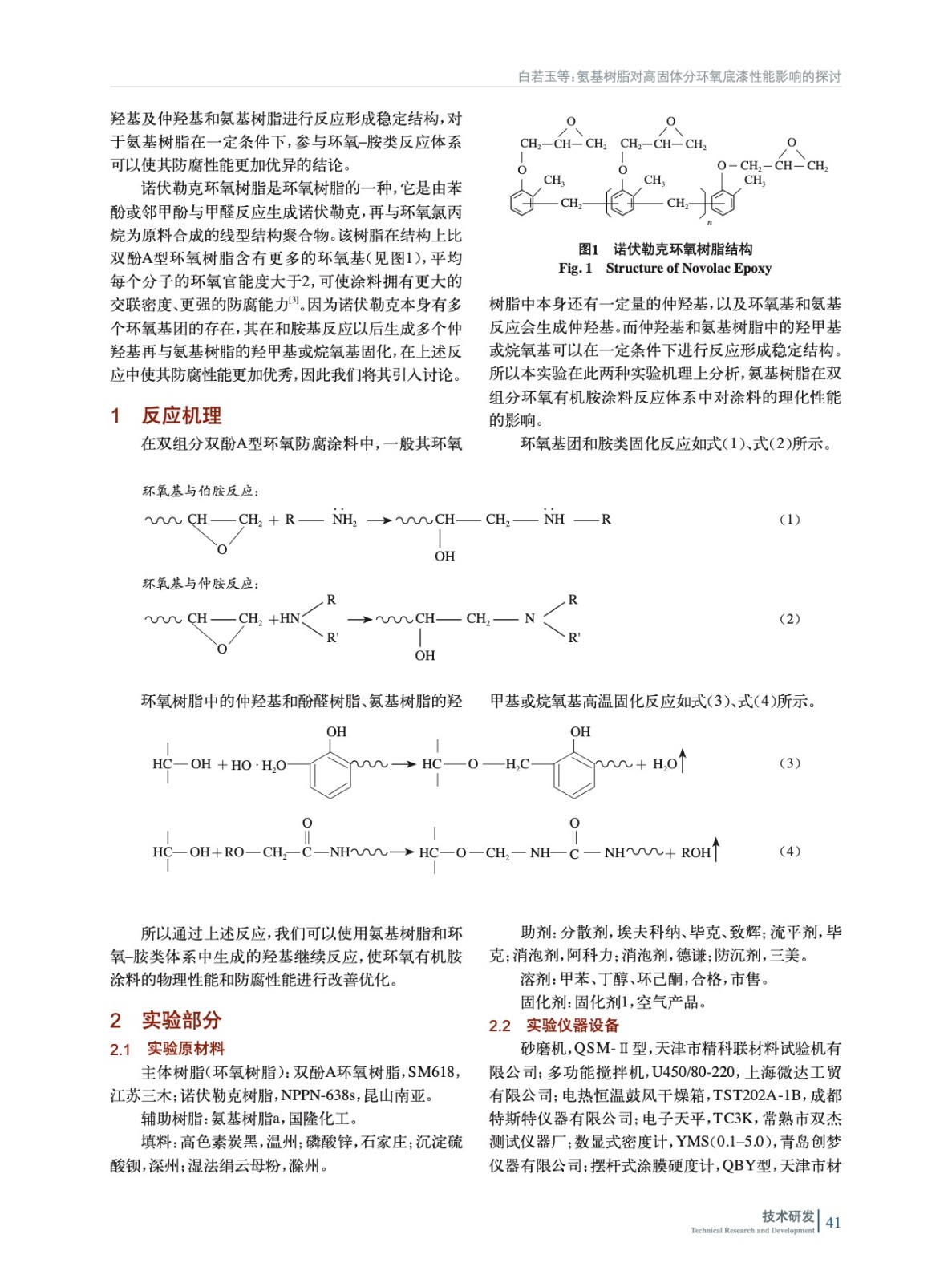氨基樹脂對高固體分環氧底漆性能影響的探討