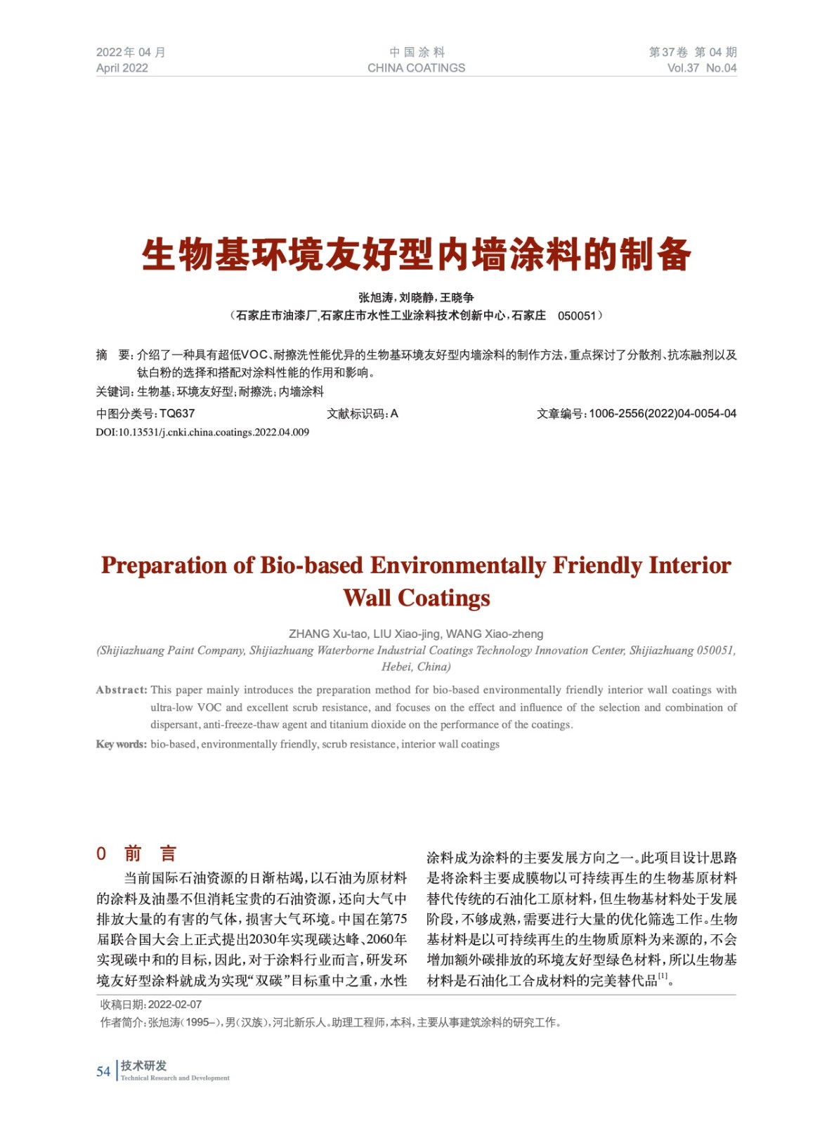 介紹了一種具有超低VOC、耐擦洗性能優異的生物基環境友好型內墻涂料的制作方法,重點探討了分散劑、抗凍融劑以及鈦白粉的選擇和搭配對涂料性能的作用和影響。