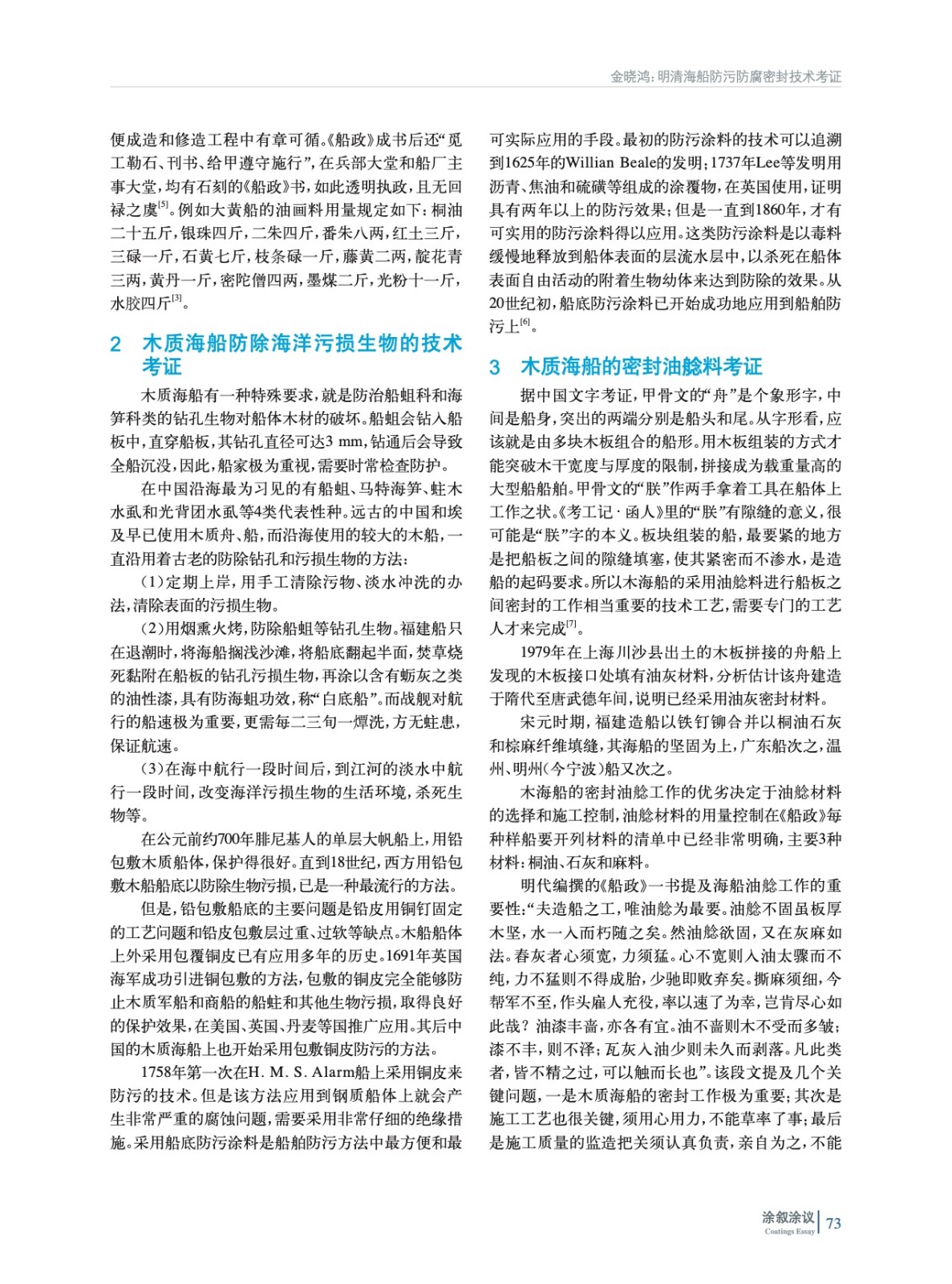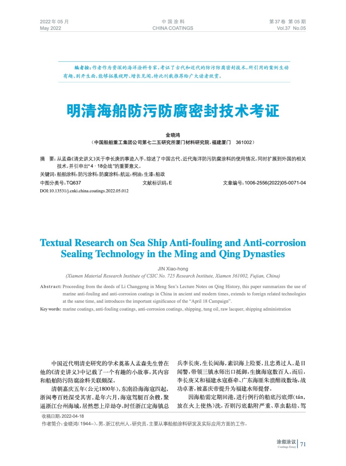 摘要:從孟森《清史講義》關(guān)于李長庚的事跡入手,綜述了中國古代、近代海洋防污防腐涂料的使用情況,同時擴展到外國的相關(guān)技術(shù),并引申出“4·18會戰(zhàn)”的重要意義。