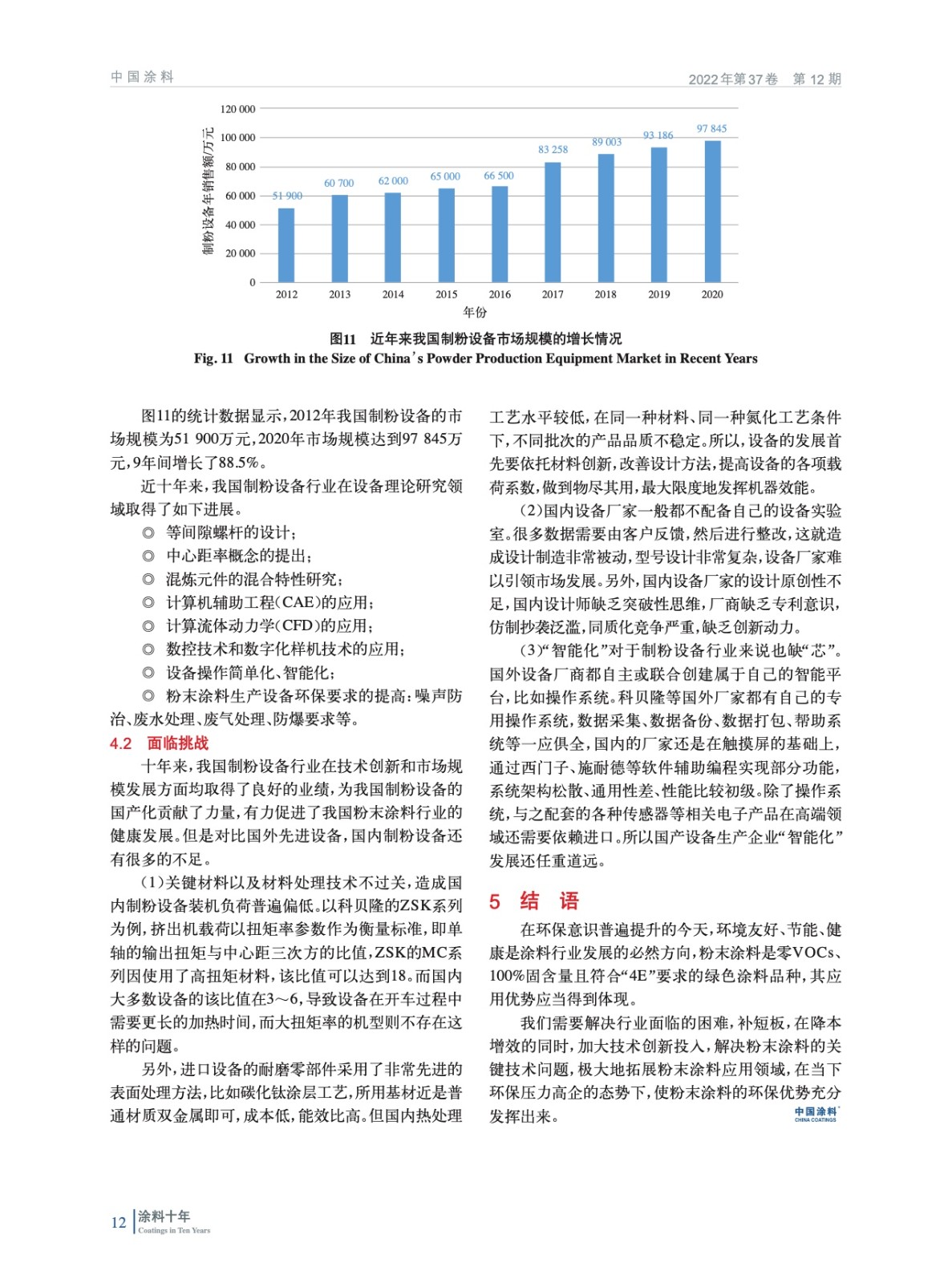 以盡可能詳實的數據闡述了十年來我國粉末涂料行業的發展情況,產業規模大幅提升,產業結構得到優化;分析了粉末涂料技術創新取得的進步以及涂裝行業粉末化面臨的困局;提出了上游產業鏈亟待解決的關鍵技術和制粉設備領域取得的進展與面臨的挑戰。