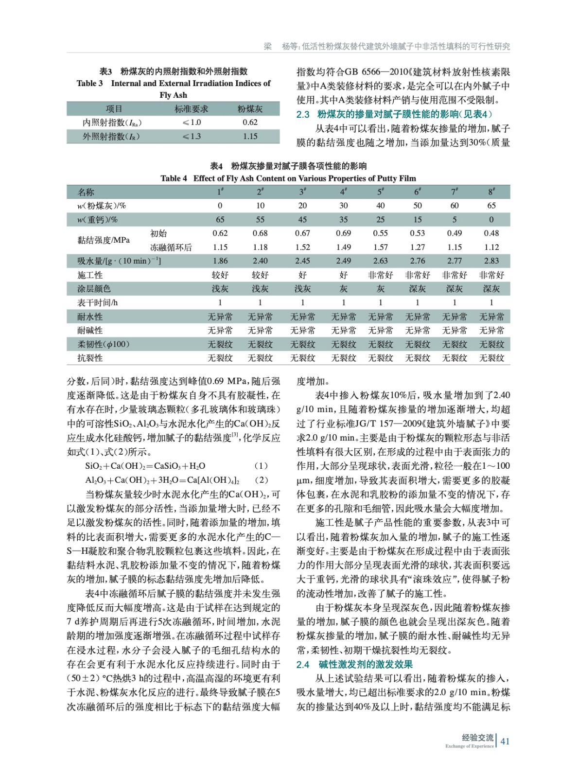 低活性粉煤灰替代建筑外墻膩子中非活性填料的可行性研究