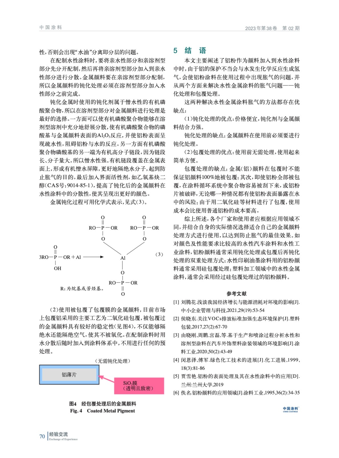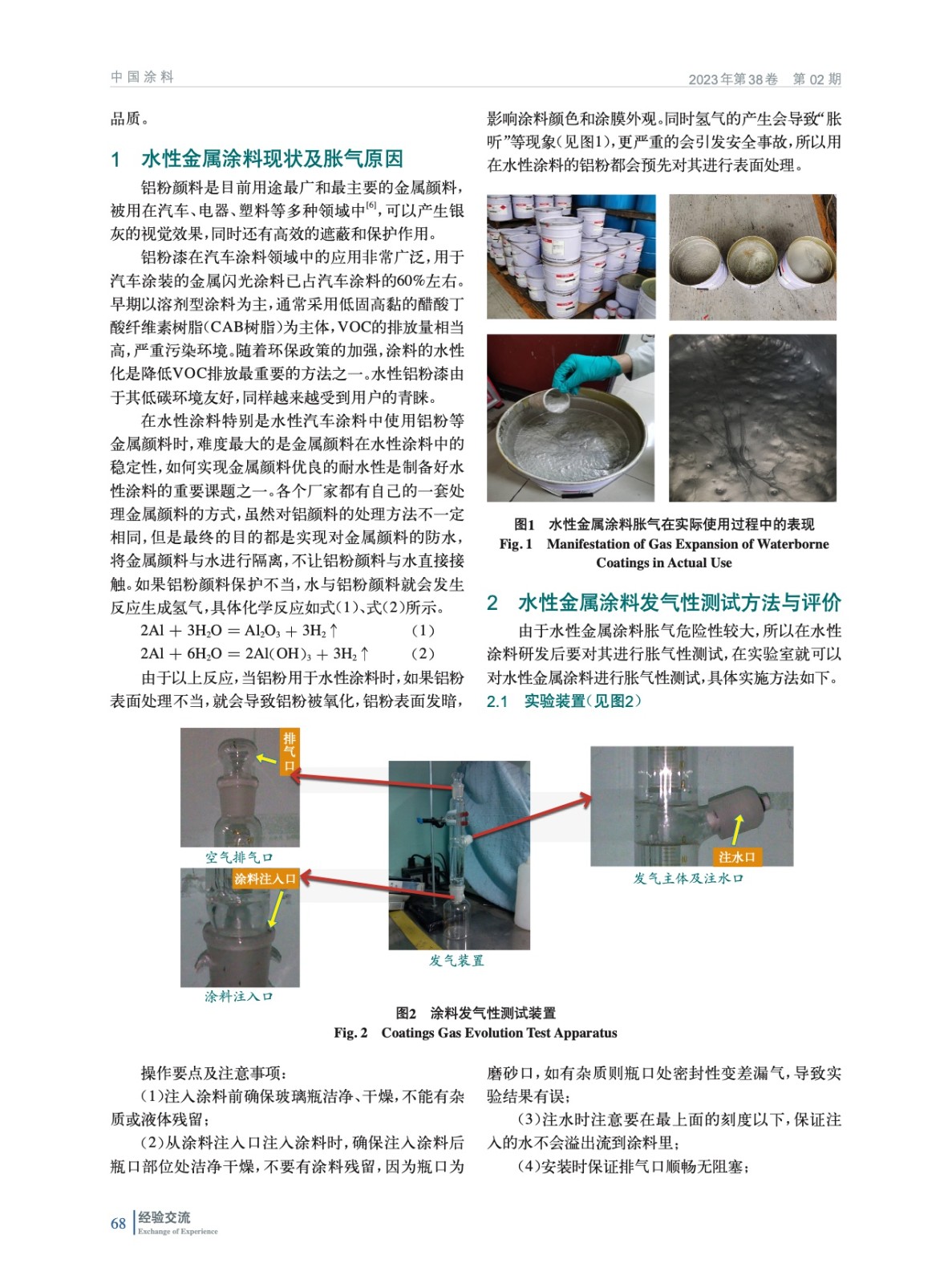 論述了水性金屬涂料發氣的原因、發氣性測試方法,以及通過對金屬顏料(鋁)進行包覆或在加入水性涂料前對鋁顏料先進行鈍化處理來解決水性涂料脹氣的問題。