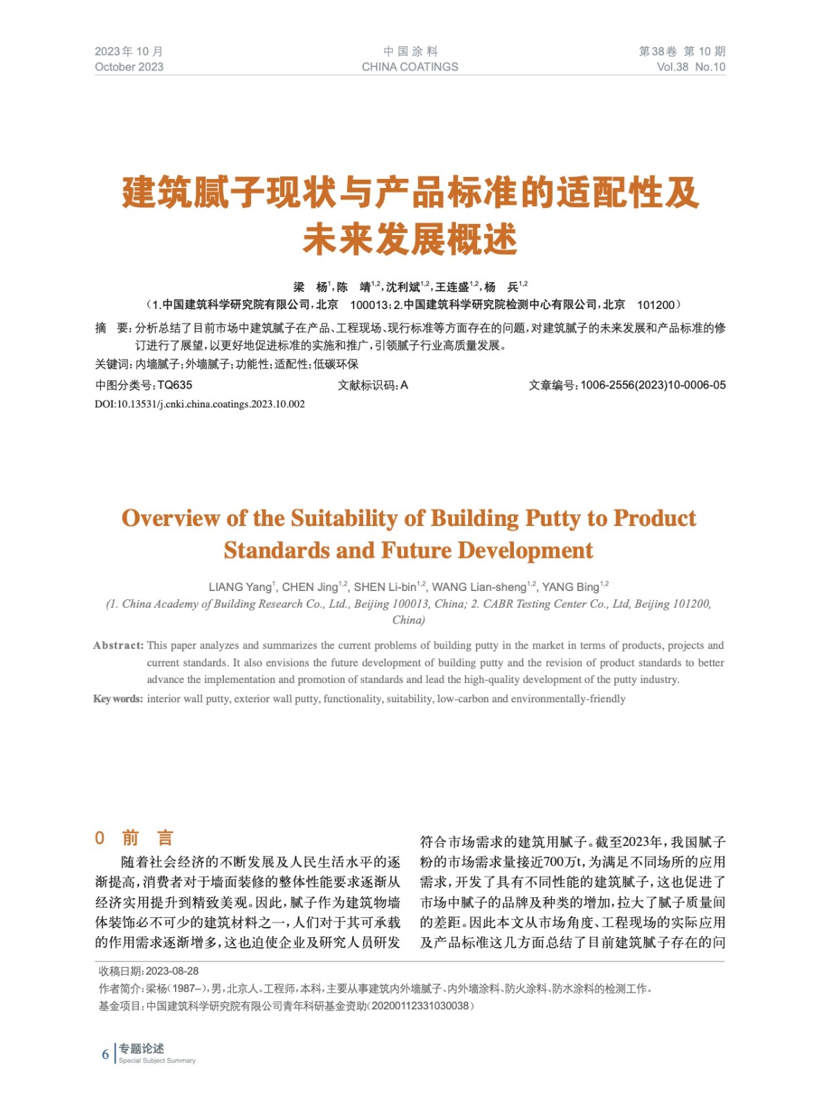 分析總結了目前市場中建筑膩子在產品、工程現場、現行標準等方面存在的問題,對建筑膩子的未來發展和產品標準的修訂進行了展望,以更好地促進標準的實施和推廣,引領膩子行業高質量發展。