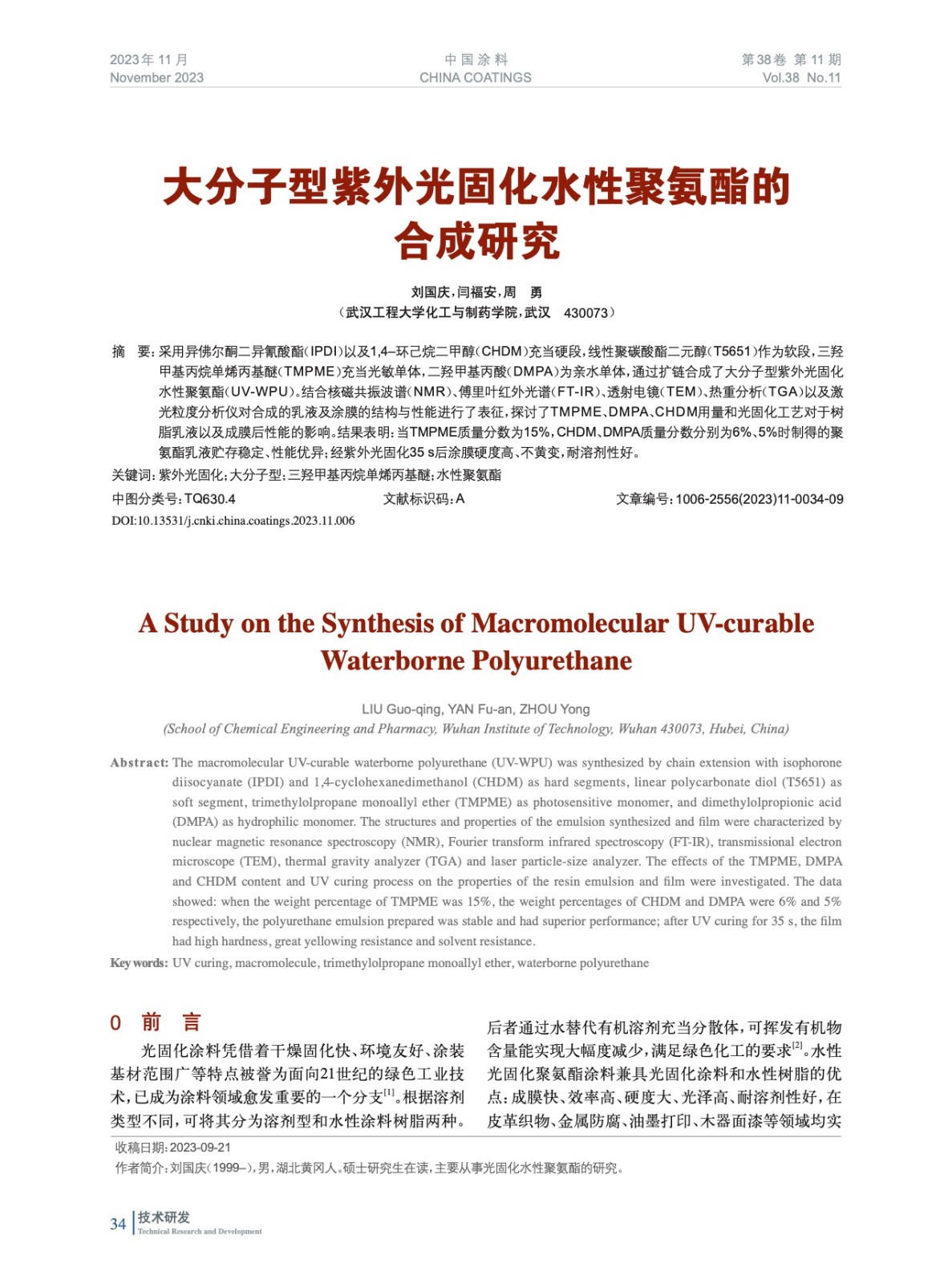 本文系作者@劉國慶,閆福安,周 勇 授權(quán)中國涂料網(wǎng)發(fā)表,并經(jīng)中國涂料網(wǎng)編輯,未經(jīng)允許不得轉(zhuǎn)載,如需轉(zhuǎn)載請聯(lián)系chinacoatingnet@vip.163.com