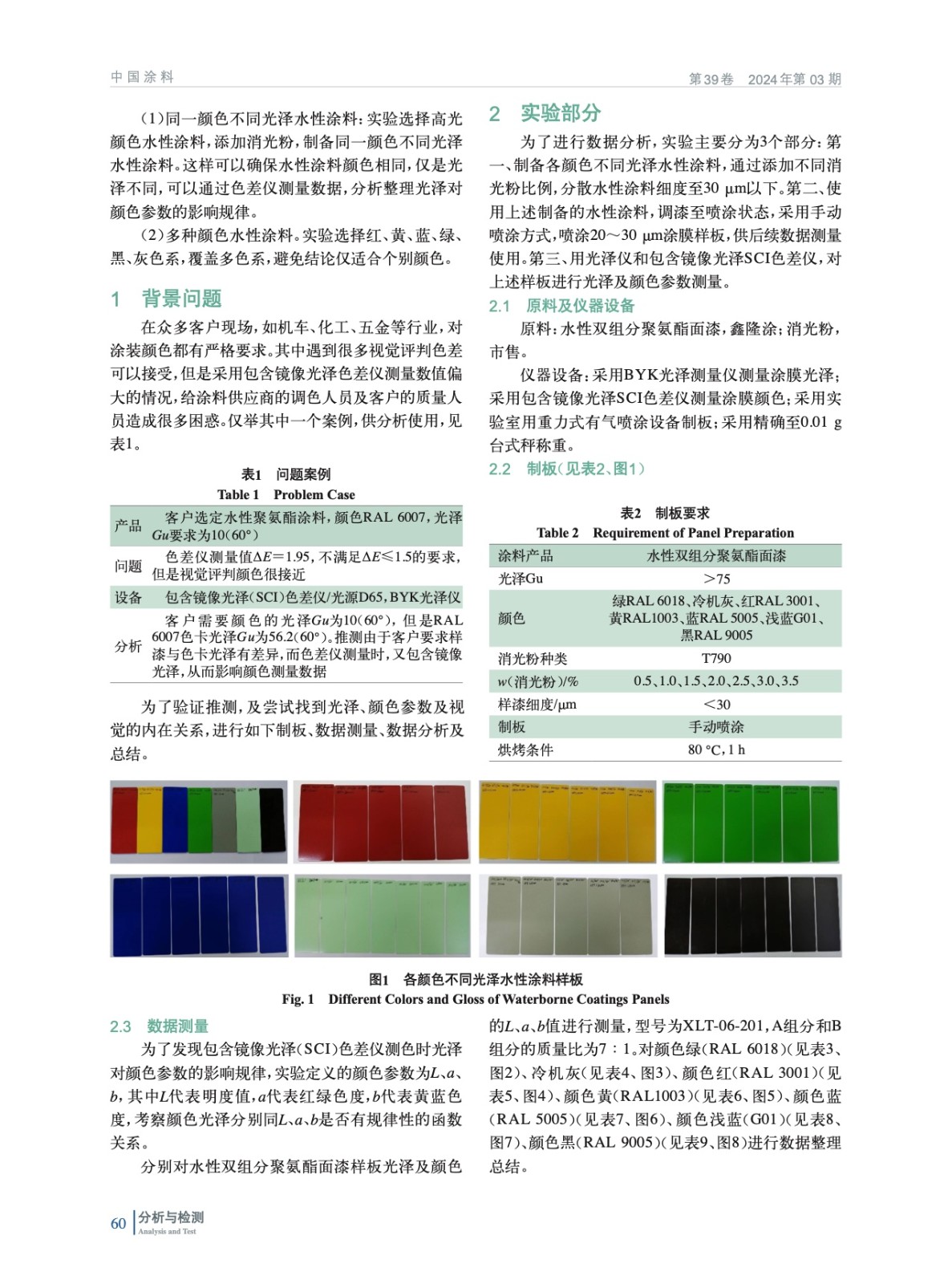 使用包含鏡像光澤(SCI)色差儀測色時光澤對涂膜顏色參數(shù)的影響