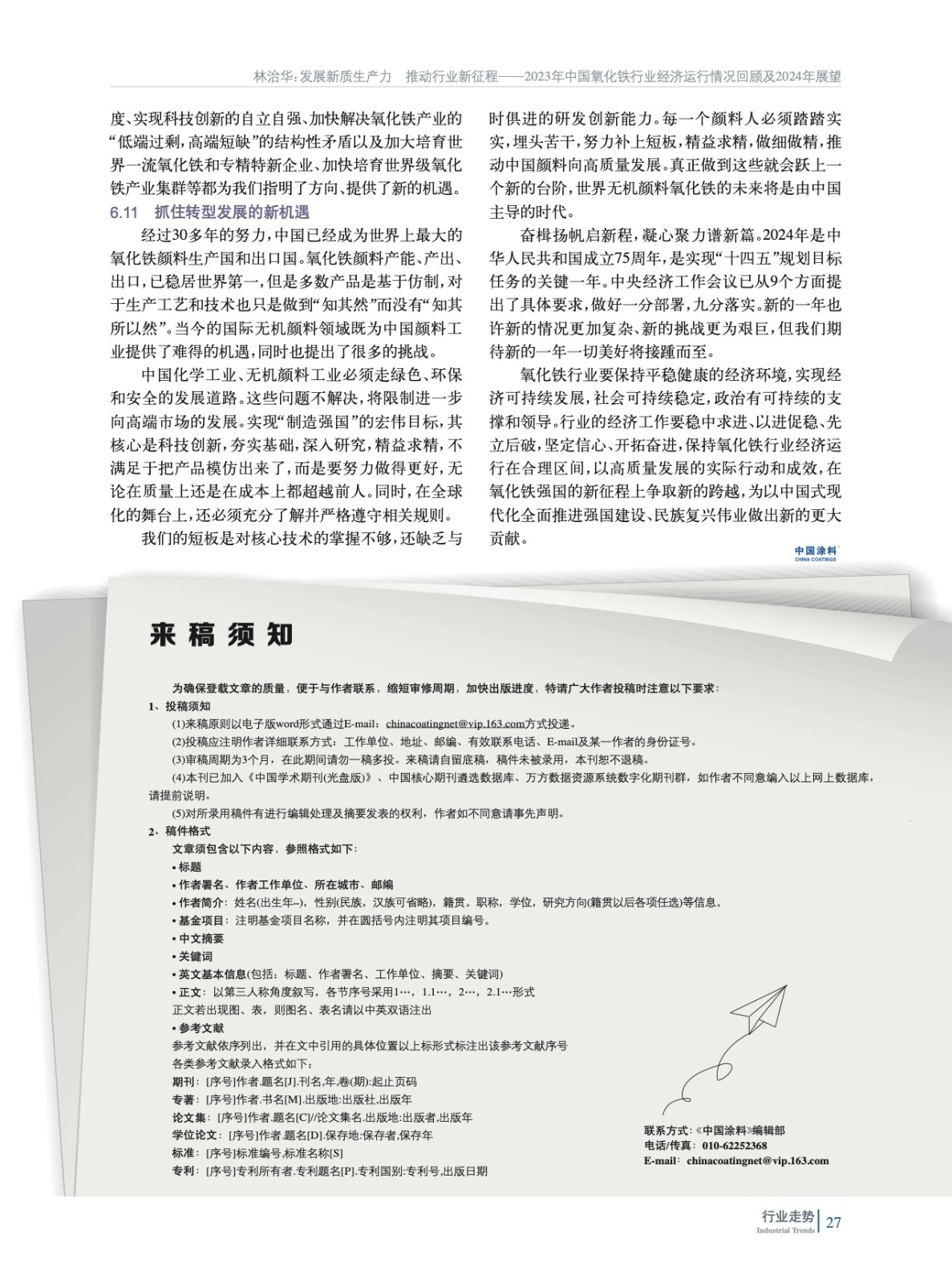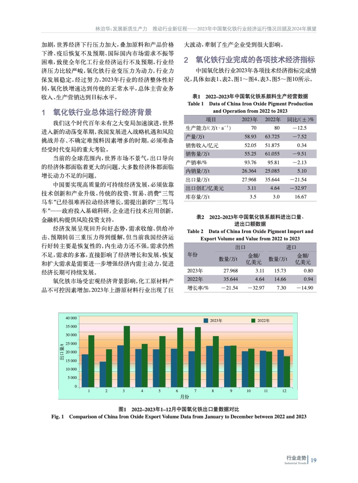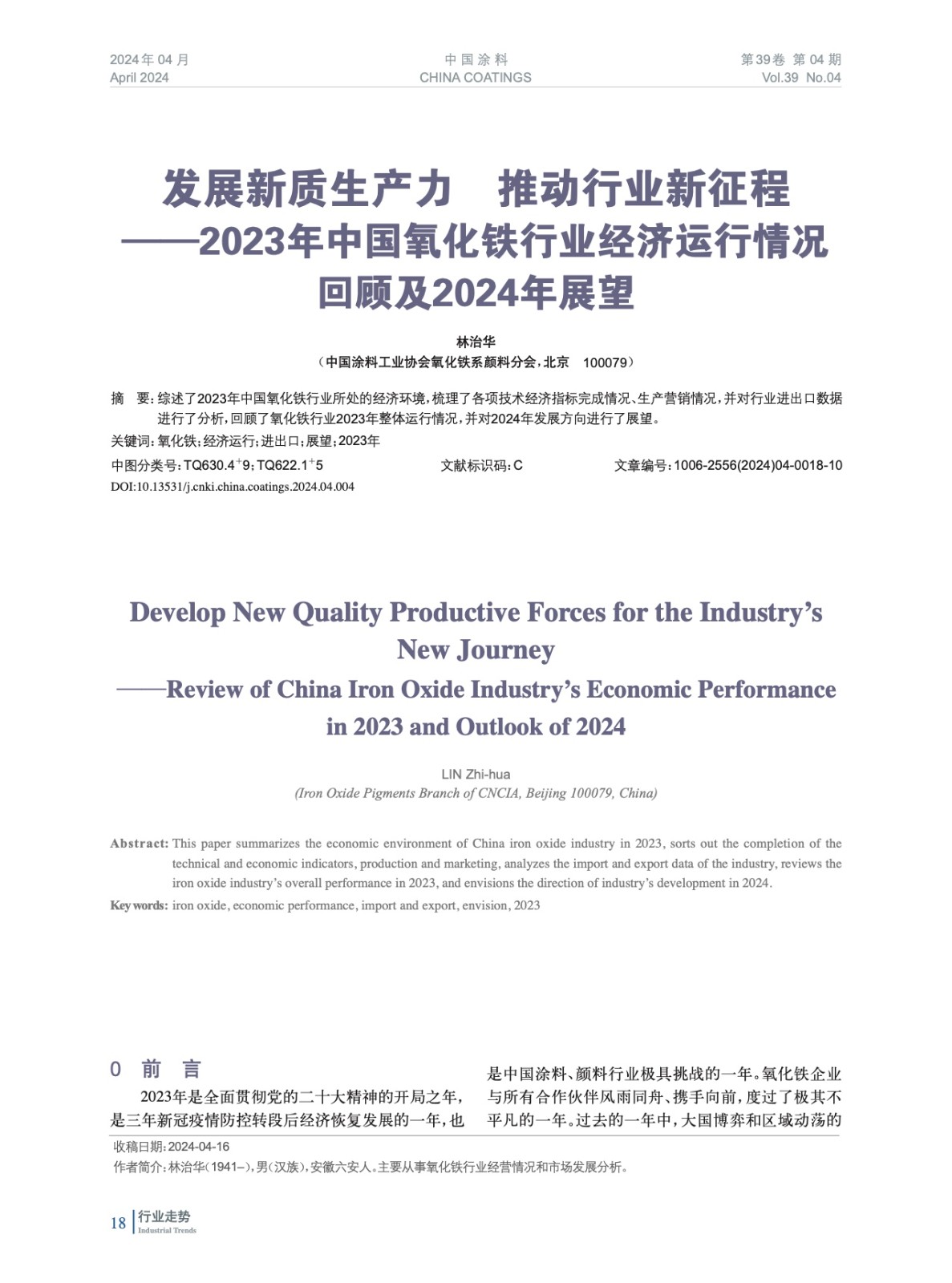 發展新質生產力 推動行業新征程——2023年中國氧化鐵行業經濟運行情況回顧及2024年展望