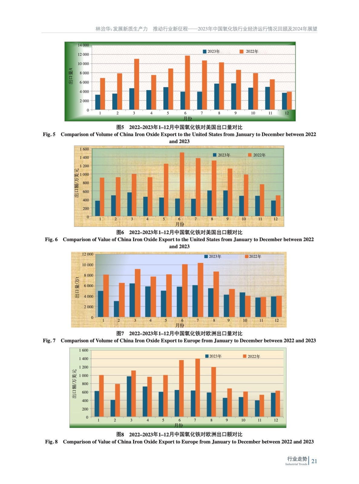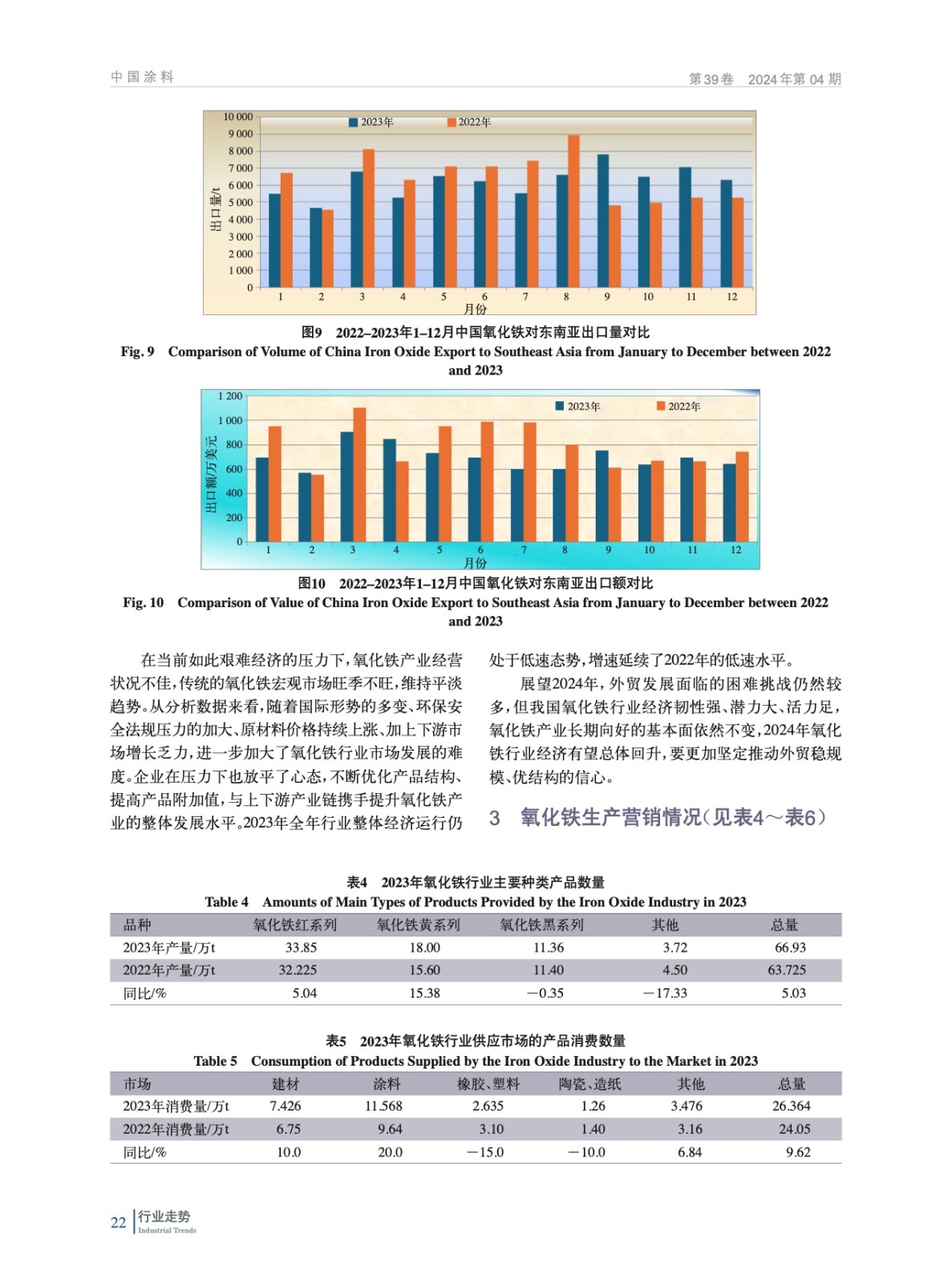 綜述了2023年中國氧化鐵行業所處的經濟環境,梳理了各項技術經濟指標完成情況、生產營銷情況,并對行業進出口數據進行了分析,回顧了氧化鐵行業2023年整體運行情況,并對2024年發展方向進行了展望。