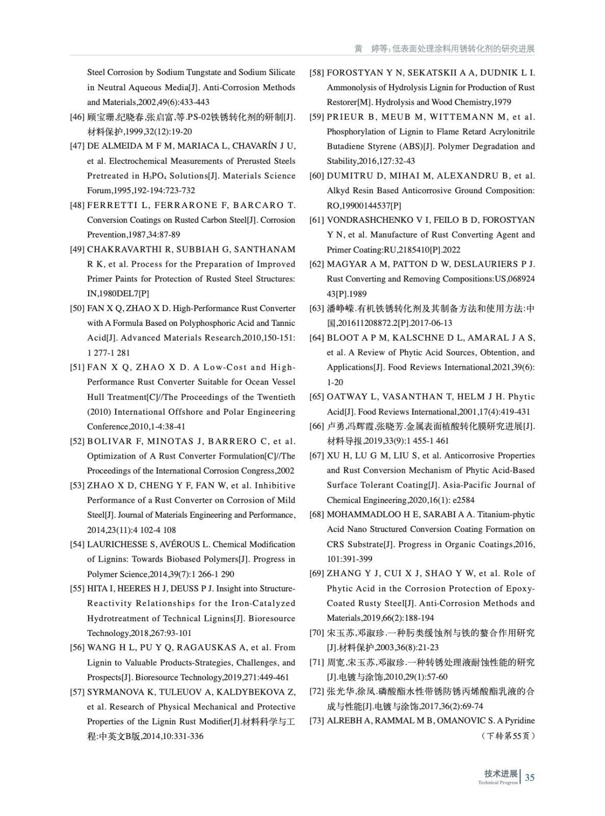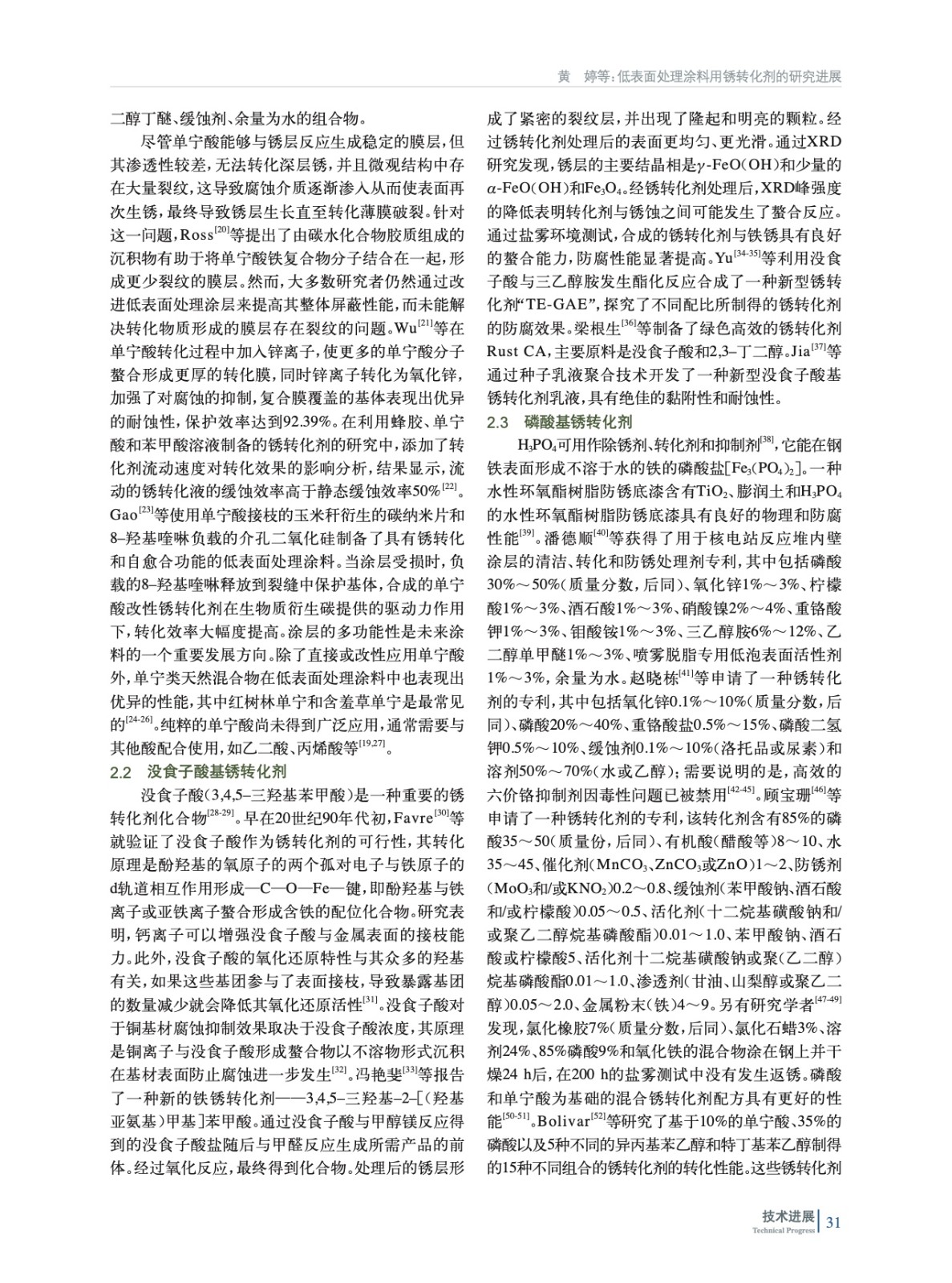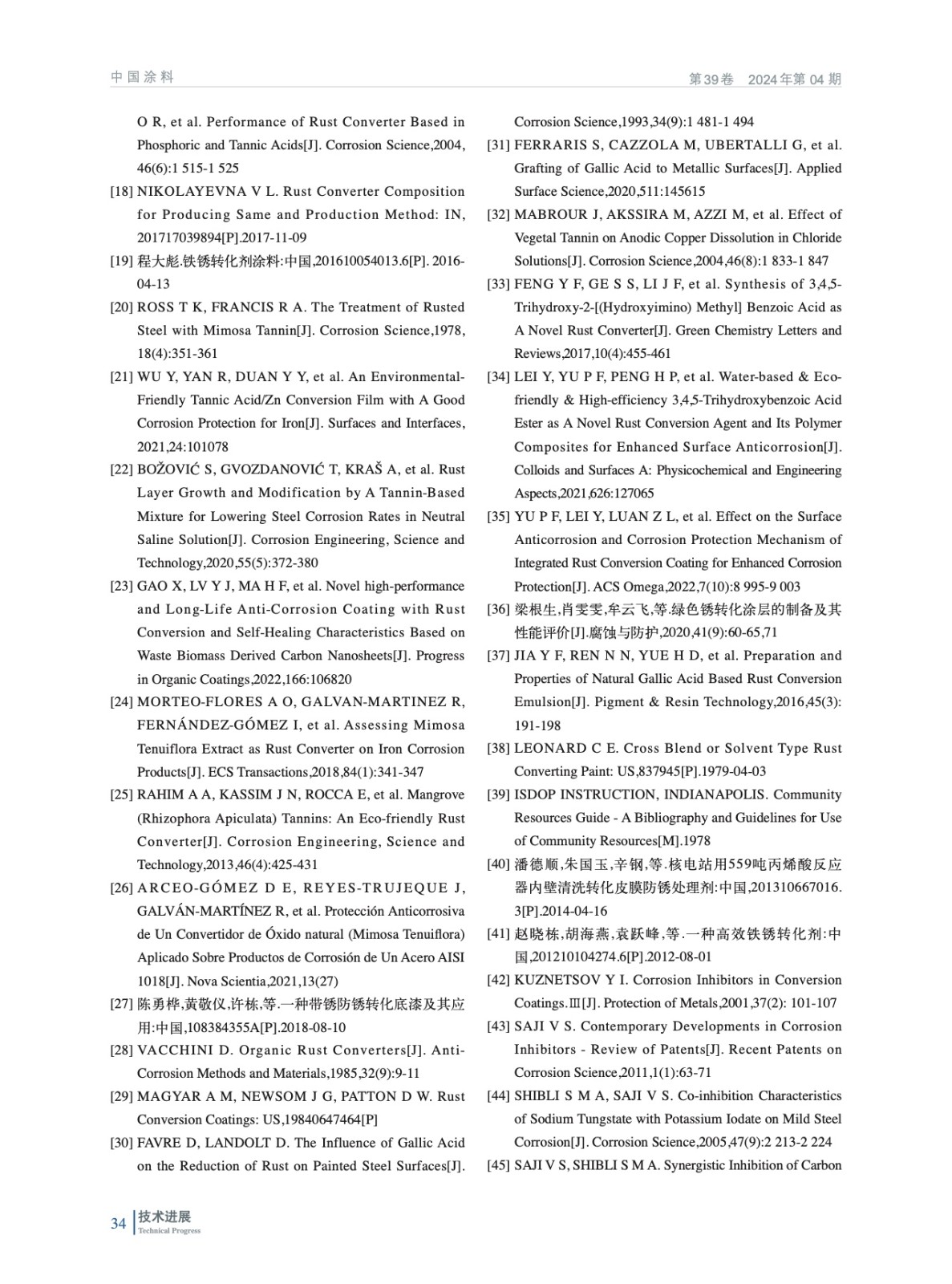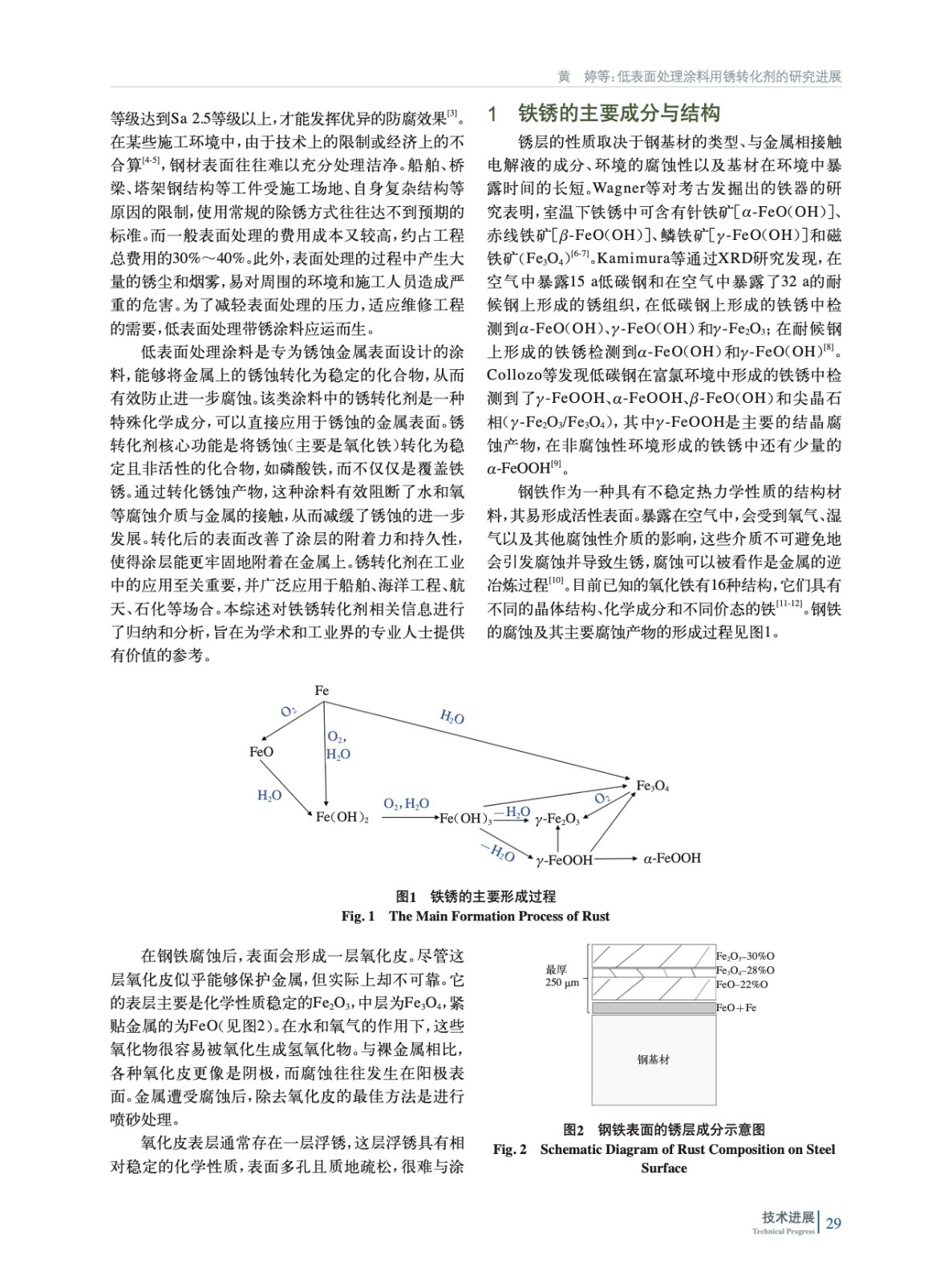 深入分析了鐵銹的生成過程及其主要成分,并詳細探討了包括單寧酸、沒食子酸、磷酸、木質素、植酸、肟、吡啶、兒茶酚等在內的銹轉化劑的研究現狀并對銹轉化劑的未來發展趨勢進行了展望。通過這些分析,為銹轉化劑的應用提供理論和實踐參考。