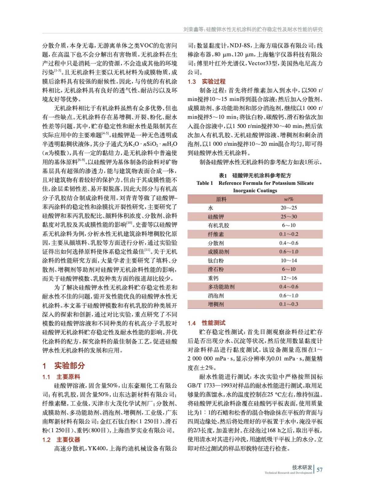 硅酸鉀水性無機涂料的貯存穩定性及耐水性能的研究