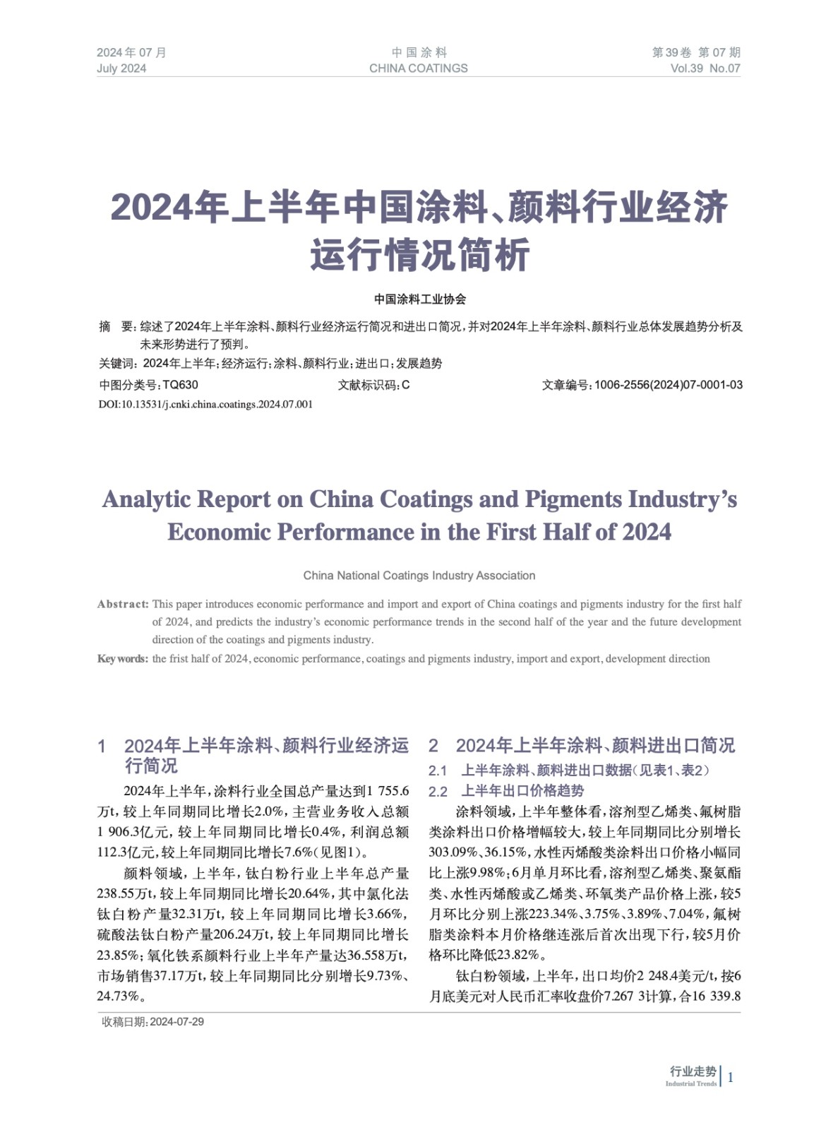 綜述了2024年上半年涂料、顏料行業經濟運行簡況和進出口簡況,并對2024年上半年涂料、顏料行業總體發展趨勢分析及未來形勢進行了預判。