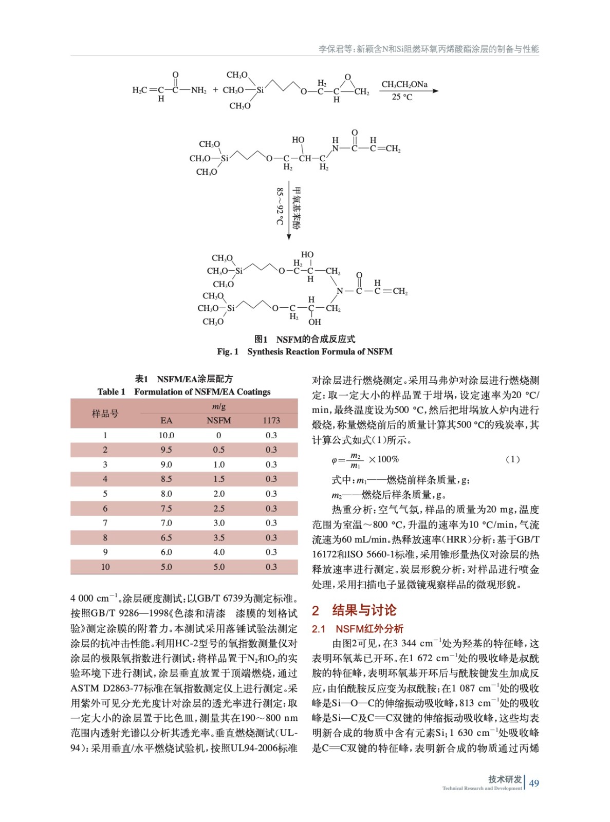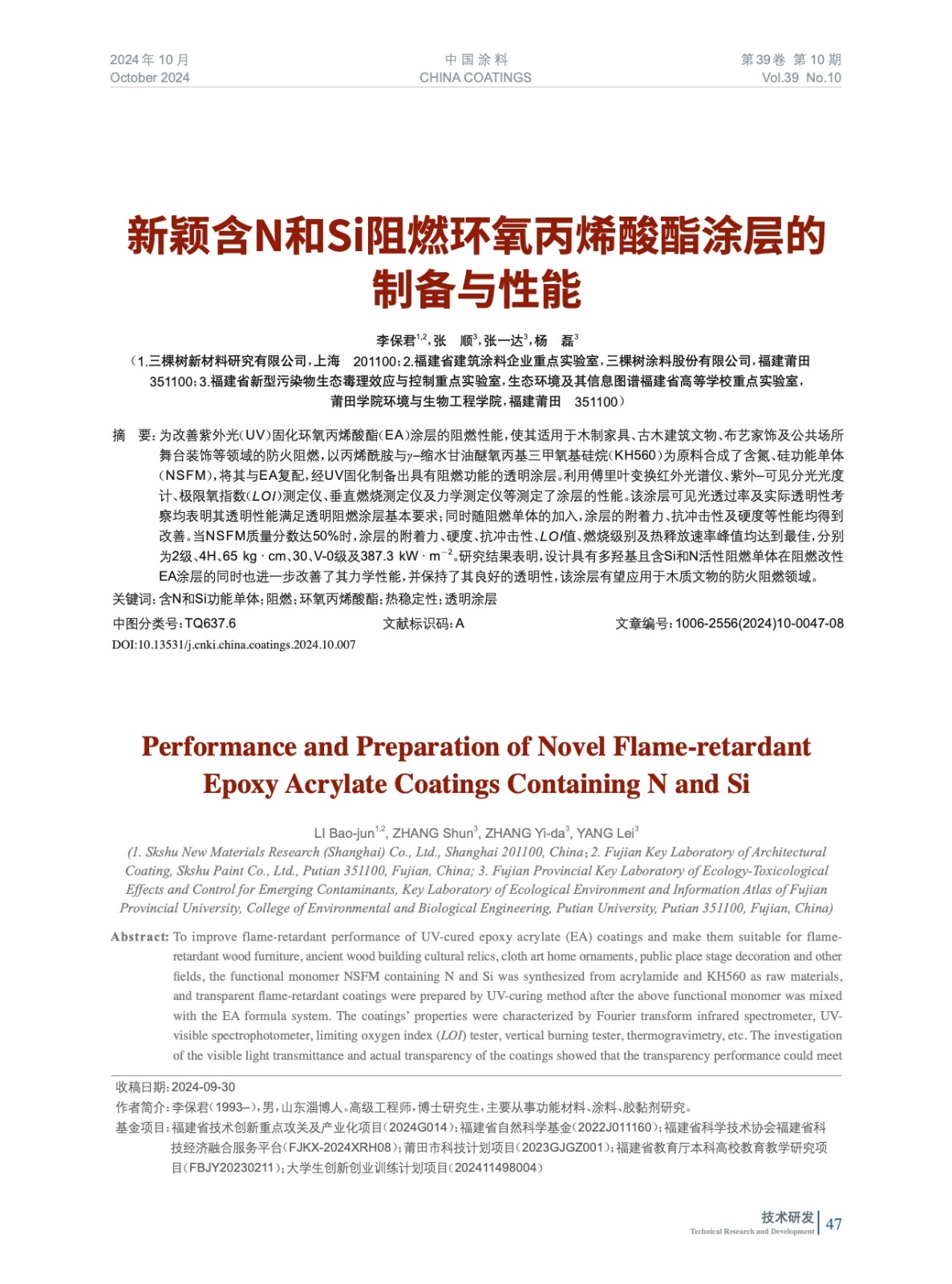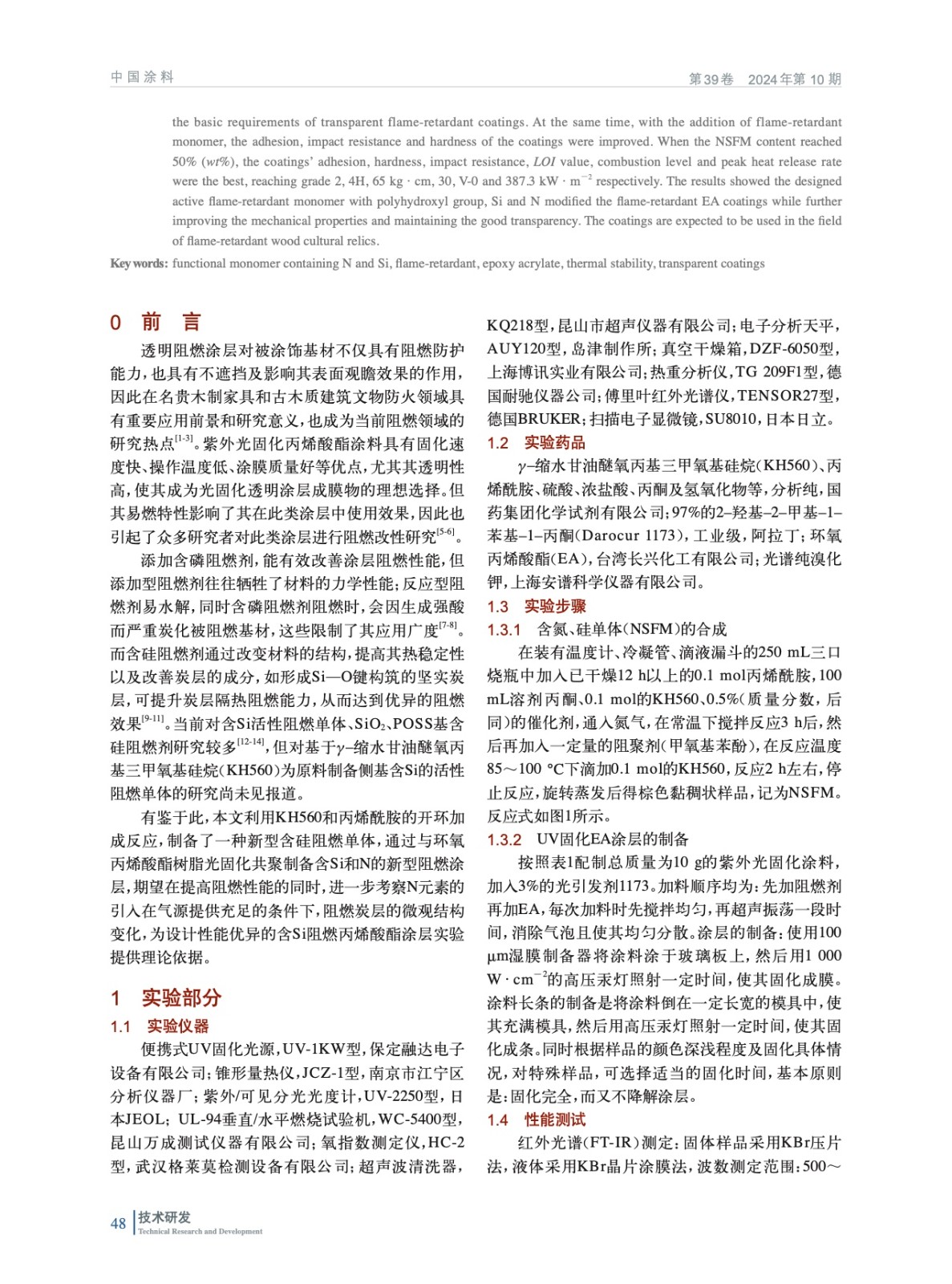 新穎含N和Si阻燃環(huán)氧丙烯酸酯涂層的制備與性能