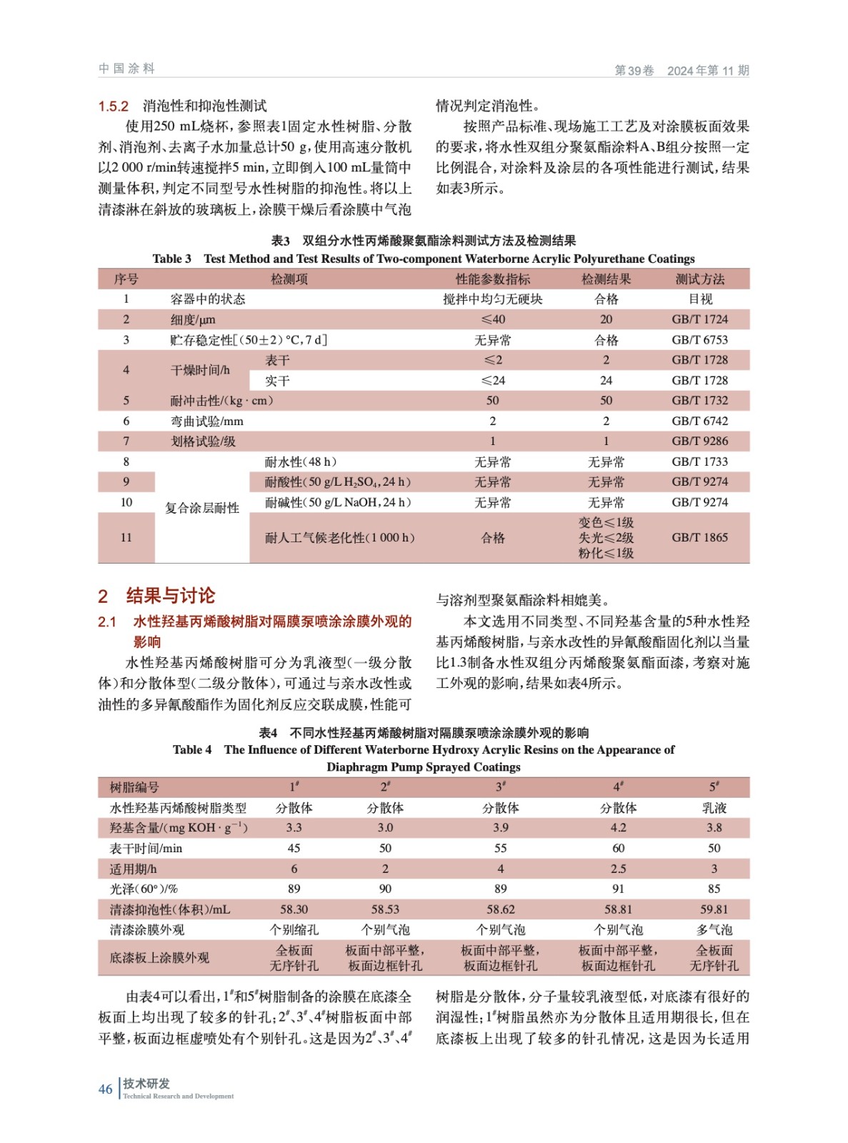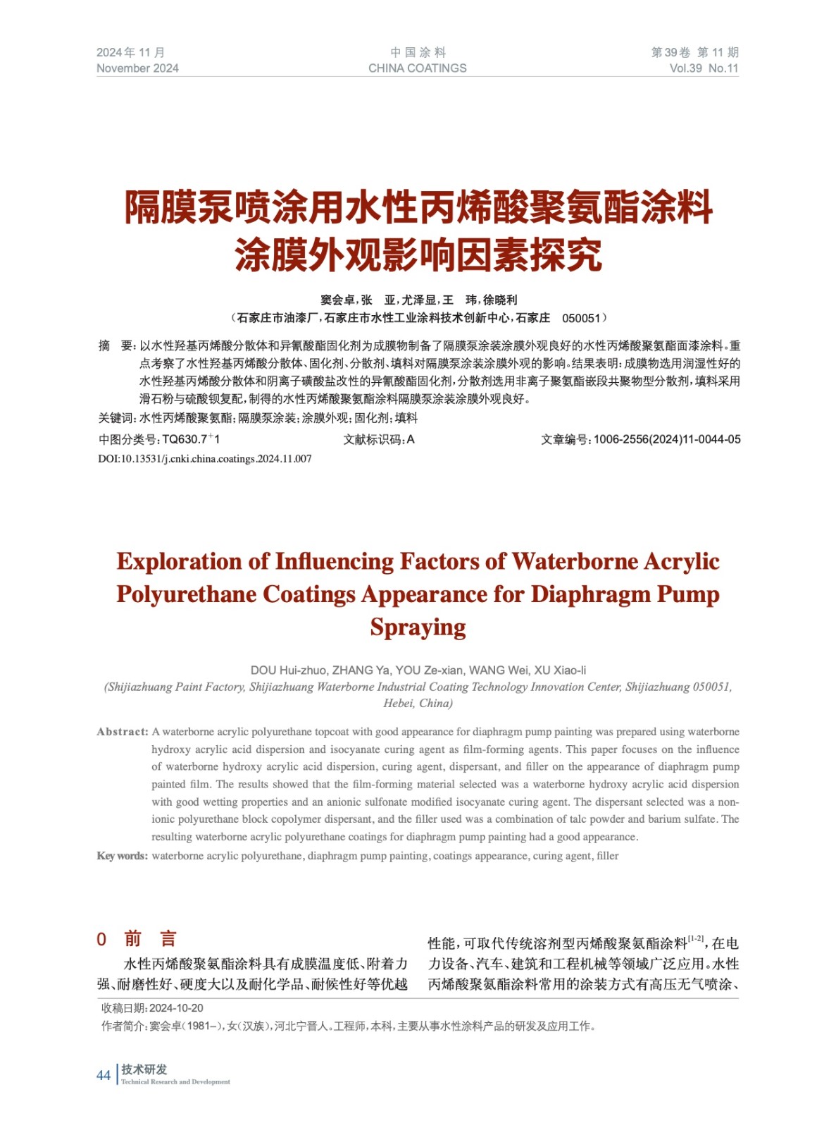 隔膜泵噴涂用水性丙烯酸聚氨酯涂料涂膜外觀影響因素探究