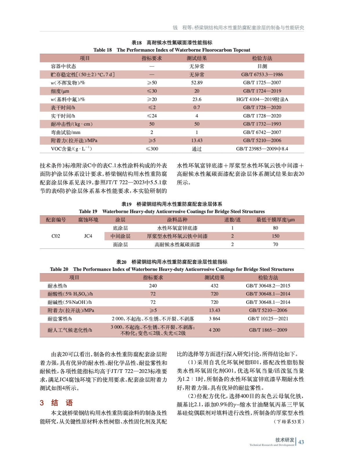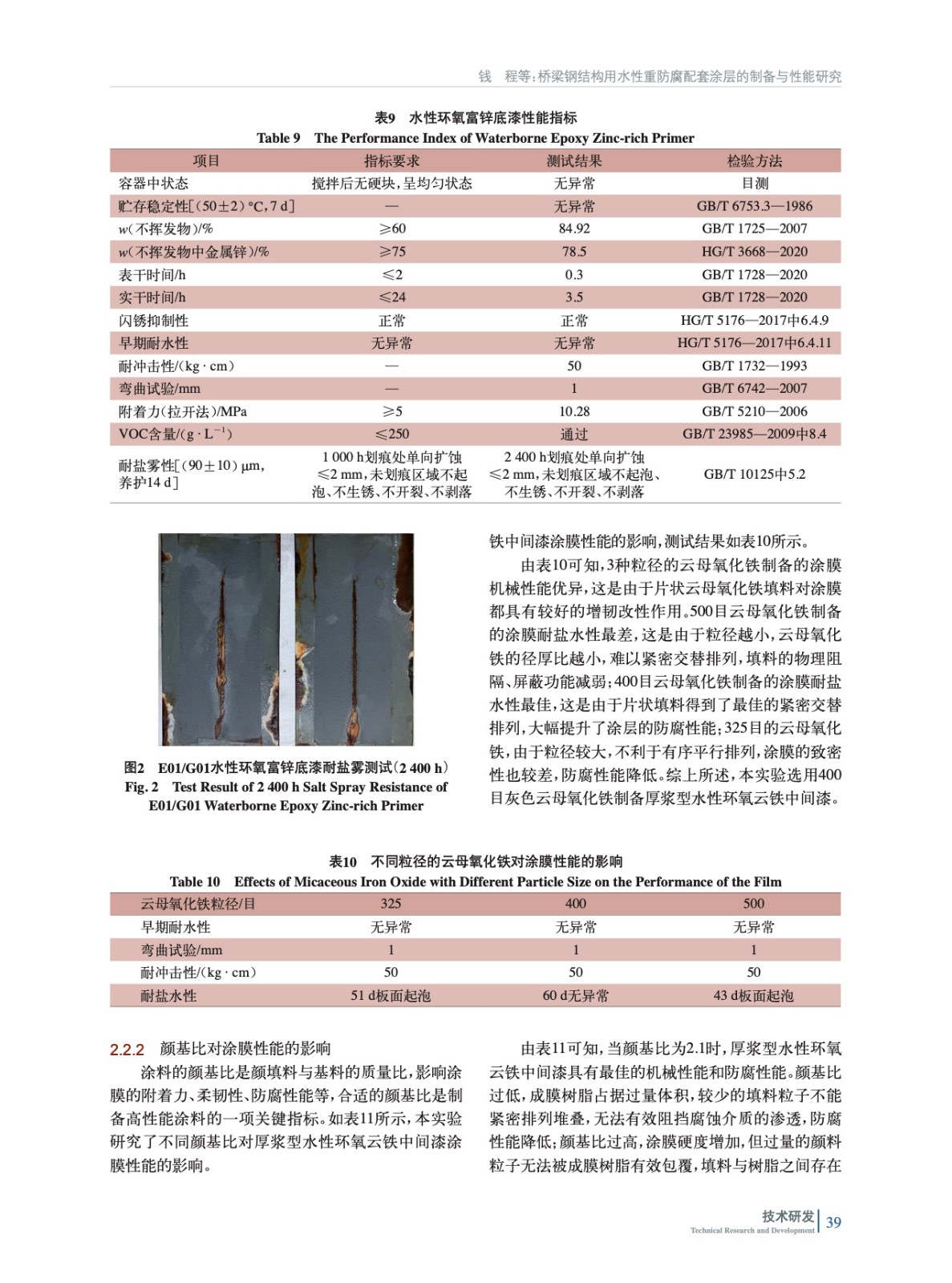 橋梁鋼結構用水性重防腐配套涂層的制備與性能研究