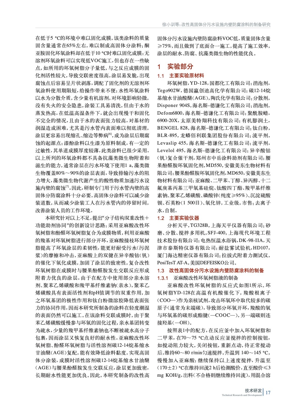 改性高固體分污水設施內壁防腐涂料的制備研究