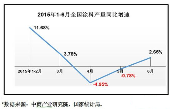 2015年1-6月中國涂料產(chǎn)量