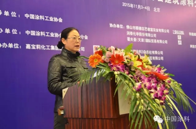 住建部政策研究中心房地產處劉美霞女士作了《住宅產業化及標準體系的建設》的報告,劉處長向代表介紹了建材工業的現狀以及住宅產業化的政策體系,指出,主要建材產品產量增速回升或下降幅度收窄,展示了2015年上半年全國房地產開發和銷售數據、全國70個大中城市新建住宅的價格指數,以及如何利用物聯網等建立建筑質量追溯服務平臺。通過數據,為建筑涂料的發展提供了參考。