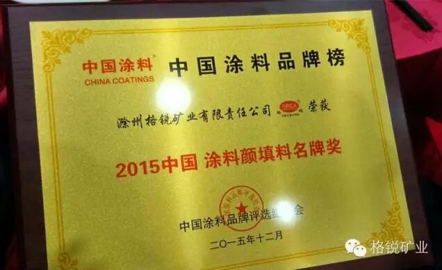 格銳礦業(yè)承蒙行業(yè)及廣大合作伙伴的厚愛,榮獲“2015年中國涂料顏填料名牌獎”殊榮。