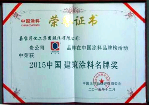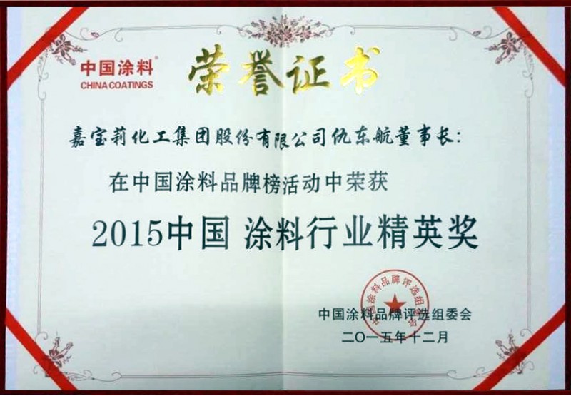 12月18日,2015中國水性工業(yè)涂料發(fā)展研討會在京召開。會議旨在順應(yīng)國家系列環(huán)保法規(guī),加快涂料行業(yè)的轉(zhuǎn)型升級。會議同期還舉辦了2015中國涂料品牌榜頒獎活動,嘉寶莉是獲獎最多的企業(yè)之一,先后被授予為2015“中國藝術(shù)涂料名牌獎”、“中國建筑涂料名牌獎”、“中國木器涂料名牌獎”、“中國防腐涂料名牌獎”,嘉寶莉董事長仇東航還榮獲了“2015中國涂料行業(yè)精英獎”。