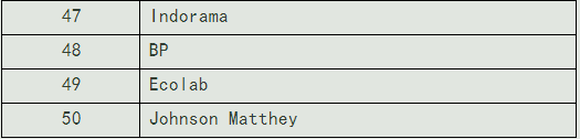 在今年的排行榜中出現(xiàn)了5張新的面孔,包括韓國韓華化學(xué)公司、泰國暹羅水泥公司、BP、藝康公司和莊信萬豐公司。BP上榜是因?yàn)楣鹃_始及時(shí)地公布化工業(yè)務(wù)的銷售收入,而暹羅水泥和韓華化工則受益于亞洲經(jīng)濟(jì)的增長。藝康公司和莊信萬豐均是專用材料供應(yīng)商,該行業(yè)正在強(qiáng)勁增長。
