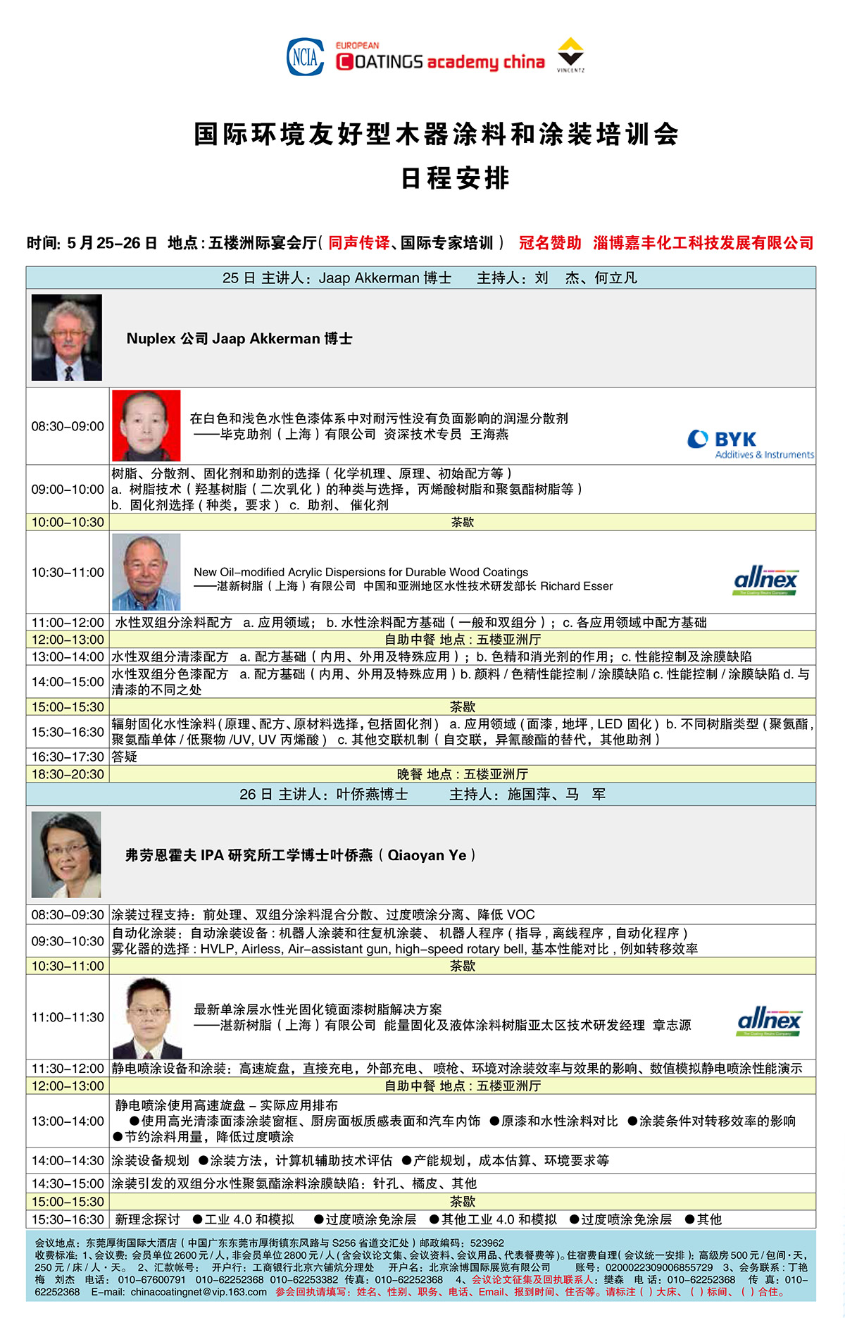 此次培訓會旨在踐行綠色發展、推進涂料行業的綠色發展的大背景下,學習國際先進的環境友好型木器涂料及涂裝技術,貫徹創新、開放、共享發展的理念,“引進來,走出去”,特別邀請了歐洲木器涂料、涂裝領域的資深專家Nuplex 公司Jaap Akkerman 博士、弗勞恩霍夫IPA 研究所工學博士葉僑燕女士,以及BYK資深技術專員王海燕女士、湛新樹脂中國和亞洲地區水性技術研發部長Richard Esser和能量固化及液體涂料樹脂亞太區技術研發經理章志源先生與學員進行環境友好型木器涂料和涂裝國際先進技術的培訓交流。未來兩天將會圍繞水性雙組分涂料、水性UV涂料等環境友好型涂料的應用領域、不同應用領域針對性的配方設計及機理,以及自動化智能涂裝技術與涂裝設備,為與會學員帶來當前世界最先進的技術和理念。此次培訓為我們了解國際先進技術提供了有益的幫助,這也是我們開展培訓創新的一次良好實踐。
