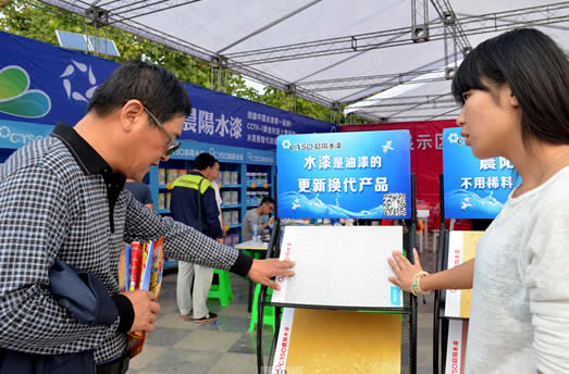 水性涂料無毒無味、節(jié)能環(huán)保特性吸引了眾多參觀者前來咨詢