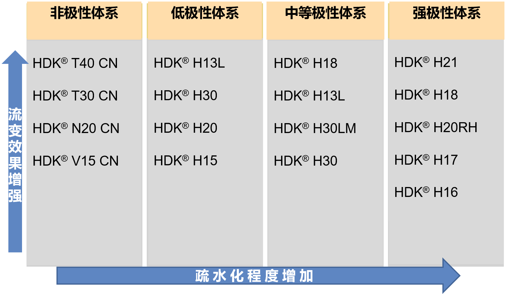 一般隨著涂料體系的極性增強(qiáng),需要選擇疏水化程度更高的HDK®以實(shí)現(xiàn)較好的流變效果。