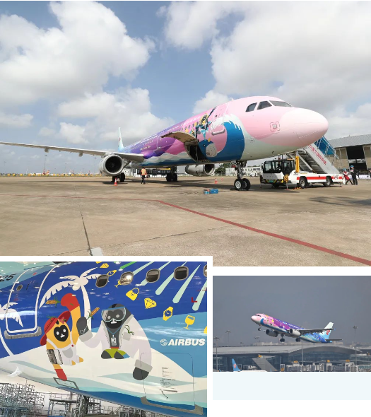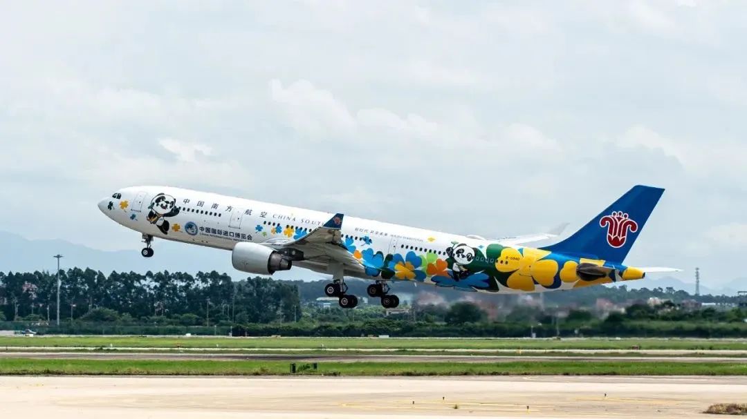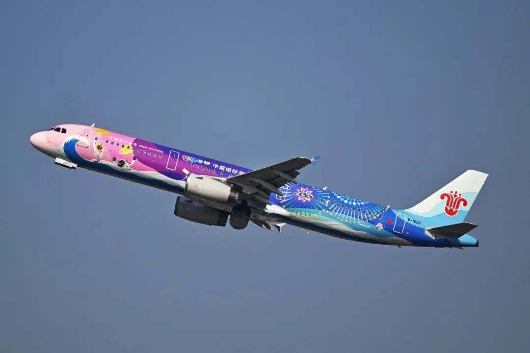 “消博號(hào)”主題彩繪飛機(jī)選用南航旗下空客A321機(jī)型,由南航集團(tuán)與海南國(guó)際經(jīng)濟(jì)發(fā)展局合作推出。它的機(jī)身以70多種斑斕色彩描繪著在吉祥物們?cè)凇澳戏薄⑸詈!⒑教臁眻?chǎng)景下的靈動(dòng)畫面,寓意著消博會(huì)熱情迎接全球企業(yè)和消費(fèi)者的到來。