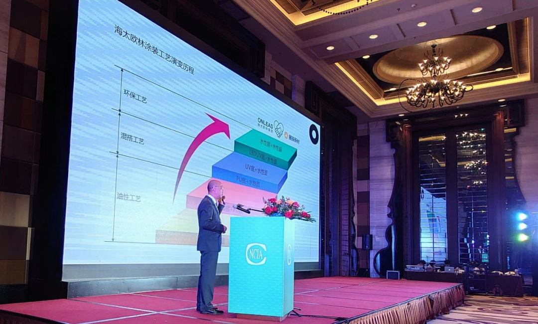 本次會議有一個特殊的環(huán)節(jié),邀請優(yōu)秀的家具制造企業(yè)上臺分享,為大家講述家具制造企業(yè)油轉(zhuǎn)水的心得及歷程。展辰涂料的優(yōu)秀合作伙伴海太歐林集團有限公司營銷總監(jiān)趙霖飛先生、百得勝智能家居有限公司總經(jīng)理助理張慧女士分別帶來精彩分享,展現(xiàn)了優(yōu)秀家居制造企業(yè)對綠色家居理念的堅守、對環(huán)保涂裝升級的決心,并分享了與展辰一同攻克“油轉(zhuǎn)水”技術(shù)難關(guān)的經(jīng)驗及心得。兩位嘉賓的分享引起上下游企業(yè)的深刻共鳴,得到了與會行業(yè)同仁的熱烈掌聲。此時此刻,大家都知道,環(huán)保水性木器涂料的發(fā)展一定要打通上下游,從終端需求到頂層研發(fā),形成良性的反饋機制,小步快跑、協(xié)同進步,這樣水性涂料才會有良性發(fā)展和未來。