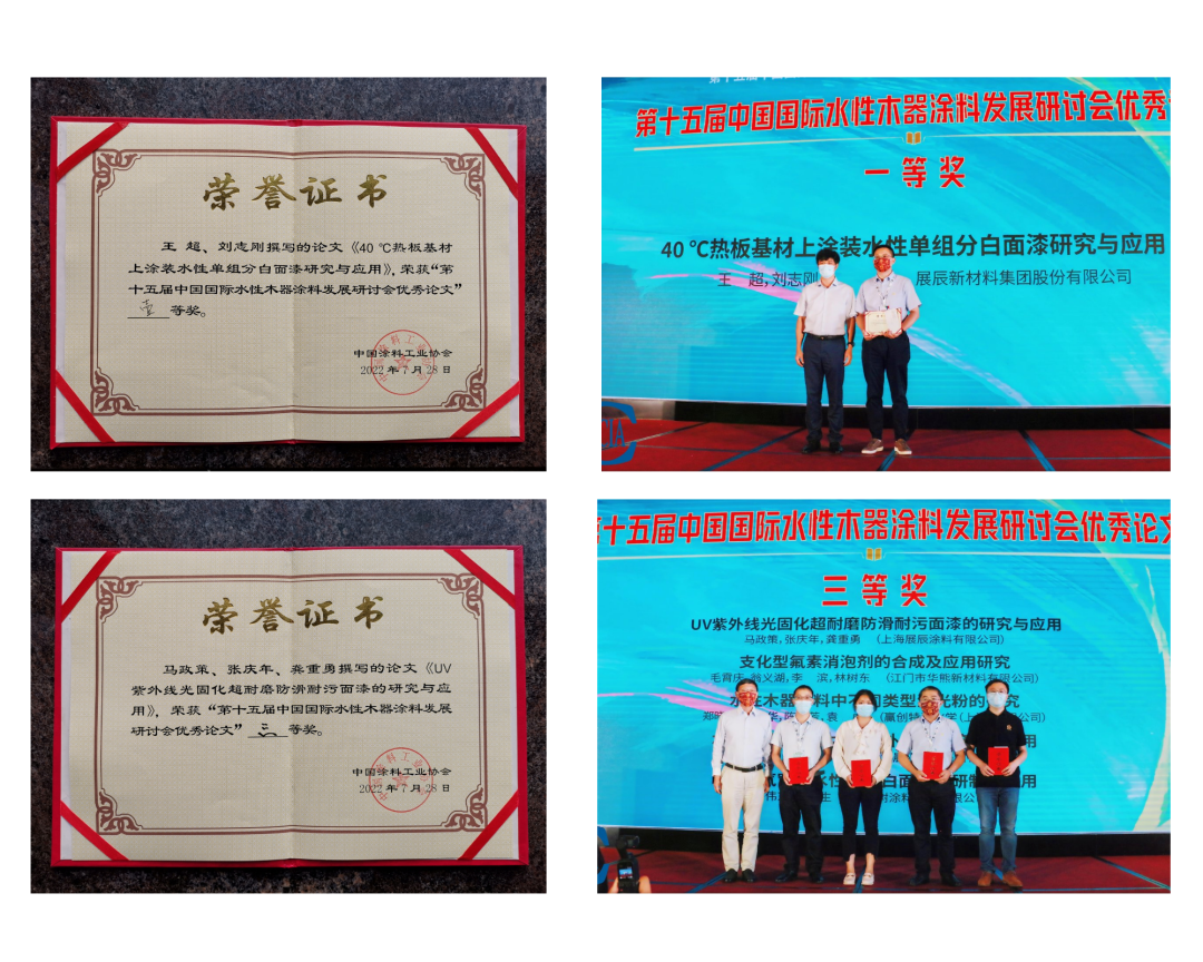本次大會還對優(yōu)秀水性涂料學(xué)術(shù)論文進行評選和表彰,展辰依然體現(xiàn)出強大的技術(shù)創(chuàng)新能力及共同發(fā)展的分享精神,獲得優(yōu)秀論文一等獎及三等獎。