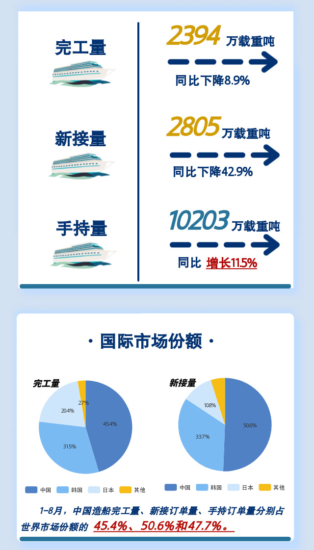 一圖讀懂:2022年1~8月船舶統計數據