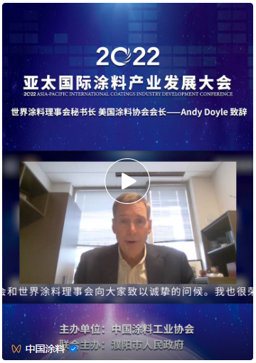 世界涂料理事會秘書長、美國涂料協(xié)會會長兼首席執(zhí)行官Andy Doyle為大會致辭。