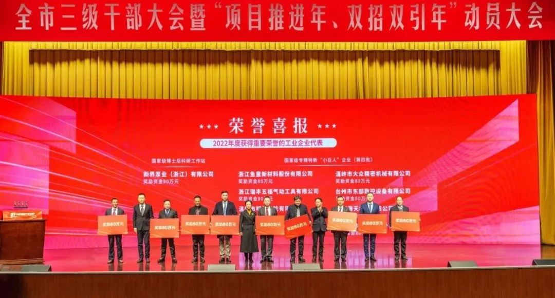 1月29日,溫嶺市三級干部大會暨“項目推進年、雙招雙引年”動員大會在溫召開。會議通報了2022年度全市工業(yè)企業(yè)二十強、民營企業(yè)納稅二十強、“干最好、當標桿、爭第一”先進集體和個人等,魚童因榮膺國家級專精特新“小巨人”企業(yè)而受到了表彰,同時也再次入圍“2022年度溫嶺市重點工業(yè)企業(yè)。