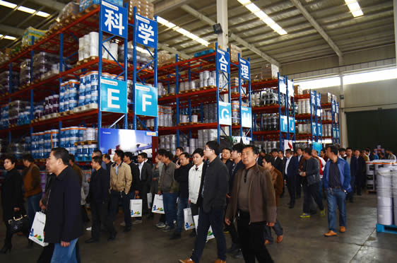 參會的行業領導及自行車數百名廠商代表集體參觀晨陽水漆廠區
