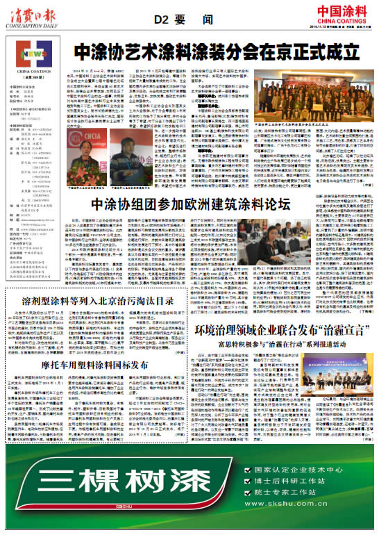 《中國涂料報》(電子版)的一切內容(包括但不限于文字、圖片、PDF、圖表、標志、標識、商標、版面設計、專欄目錄與名稱、內容分類標準以及為讀者提供的任何信息)僅供中國涂料信息網讀者閱讀、學習研究使用,未經中國涂料雜志社有限公司及/或相關權利人書面授權,任何單位及個人不得將《中國涂料報》(電子版)所登載、發(fā)布的內容用于商業(yè)性目的,包括但不限于轉載、復制、發(fā)行、制作光盤、數據庫、觸摸展示等行為方式,或將之在非本站所屬的服務器上作鏡像。否則,中國涂料雜志社有限公司將采取包括但不限于網上公示、向有關部門舉報、訴訟等一切合法手段,追究侵權者的法律責任。