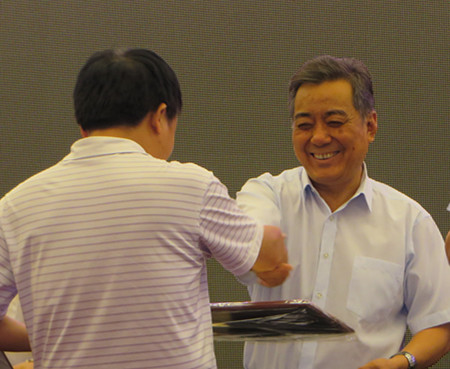 中國石油和化學工業聯合會李勇武會長為獲獎者頒獎